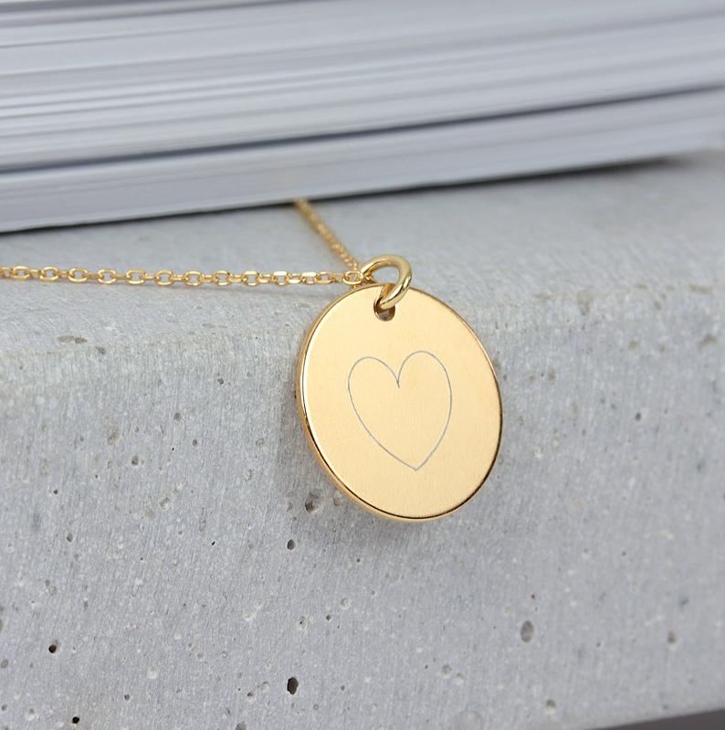 Feine Halskette aus 925 Silber vergoldet mit einem runden Gravur Anhänger, der mit einer zierlichen Wunschgravur verziert ist.