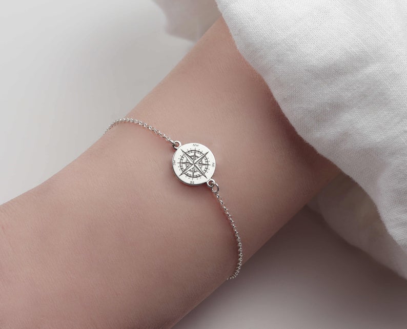 Armband Kompass 925 Silber | Armkette Windrose Himmelsrichtungen Schmuck