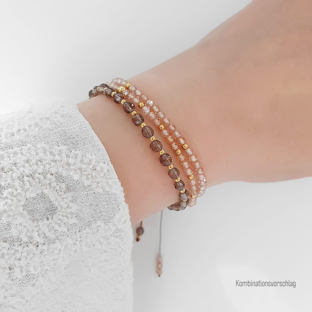 Verstellbares Armband mit 4 mm facettierten Perlen (Rauchquarz) von Hand geschmückt.