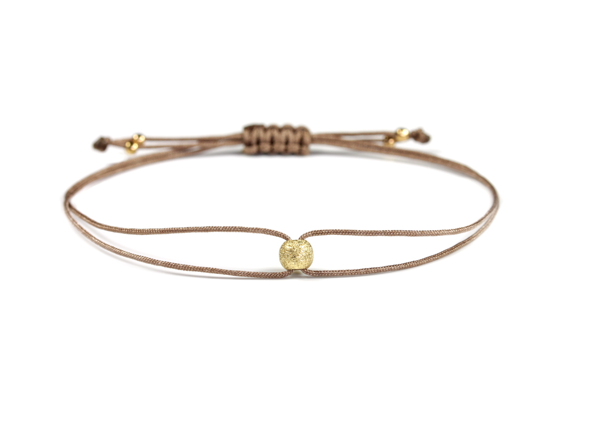 Textilarmband in Taupe mit einer feinen gebürsteten vergoldeten Silberperle.