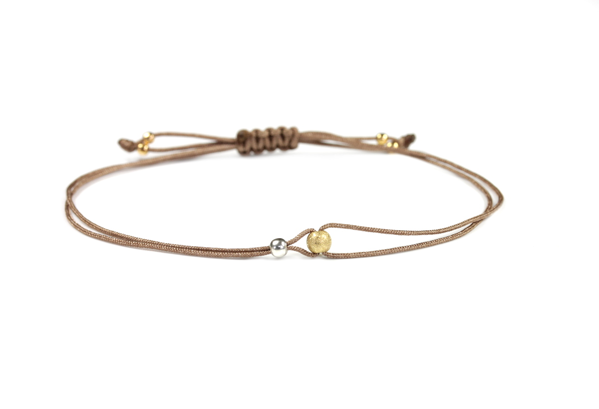 Kügelchen Textilarmband Perle,Taupe-Silber-Gold | Freundschaftsarmband dünn