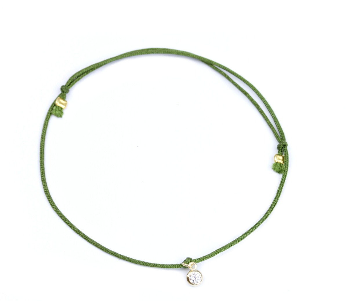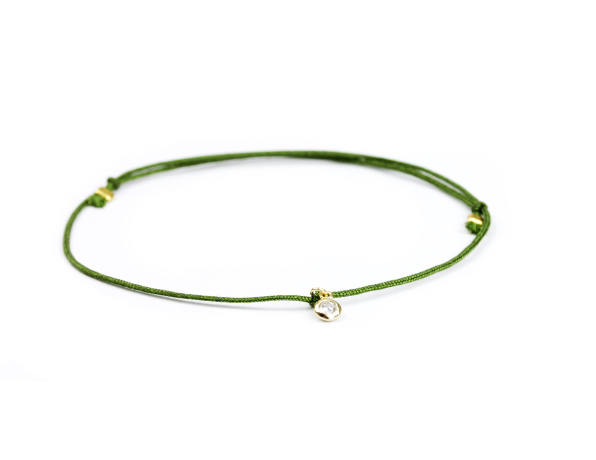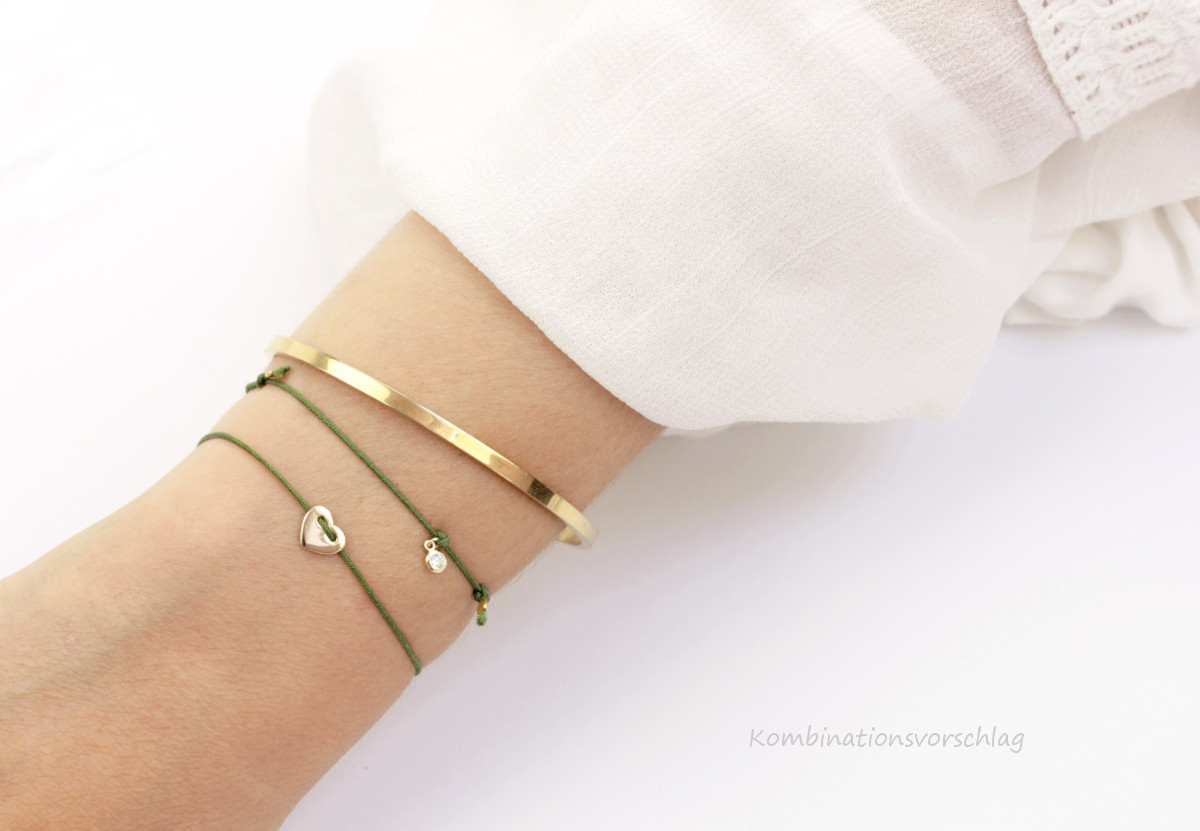 Textilarmband in Grün mit einem feinen vergoldeten 925 Silber Zirkonia Anhänger.