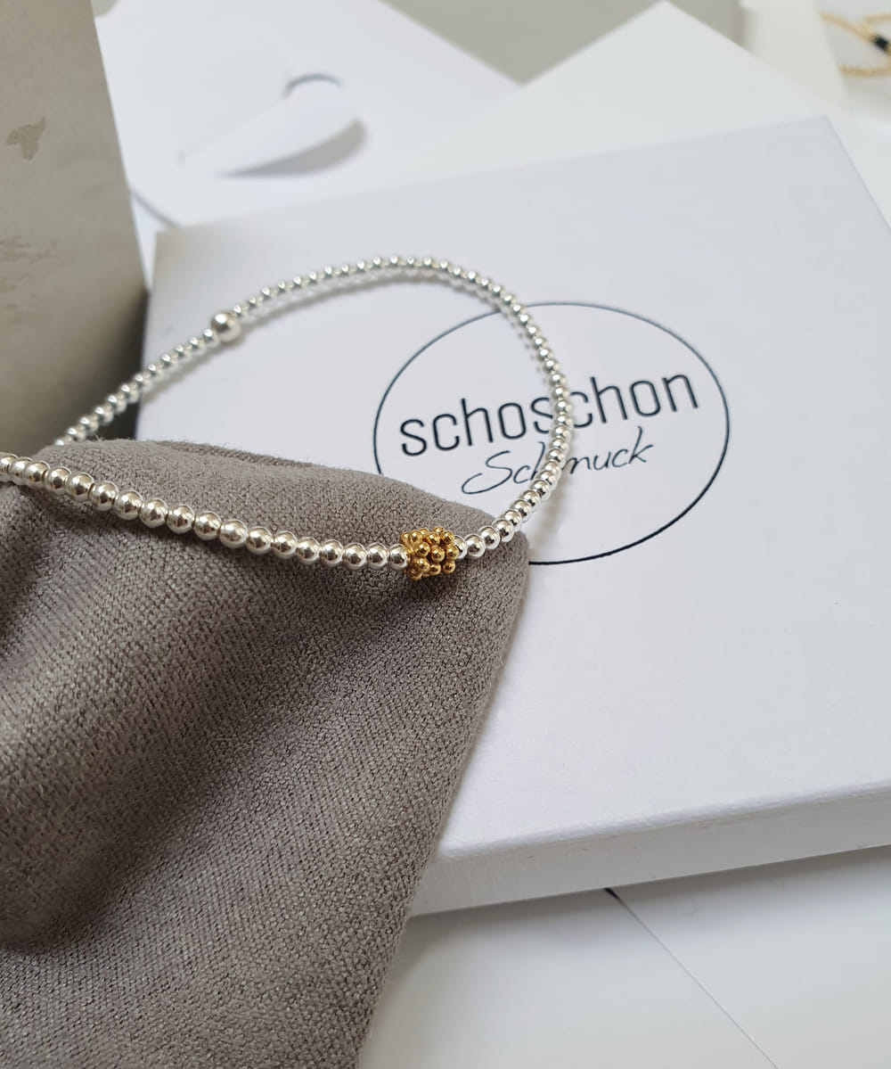 Feines Armband in Silber-Gold, 925 Silber teils vergoldet | Kugelarmband