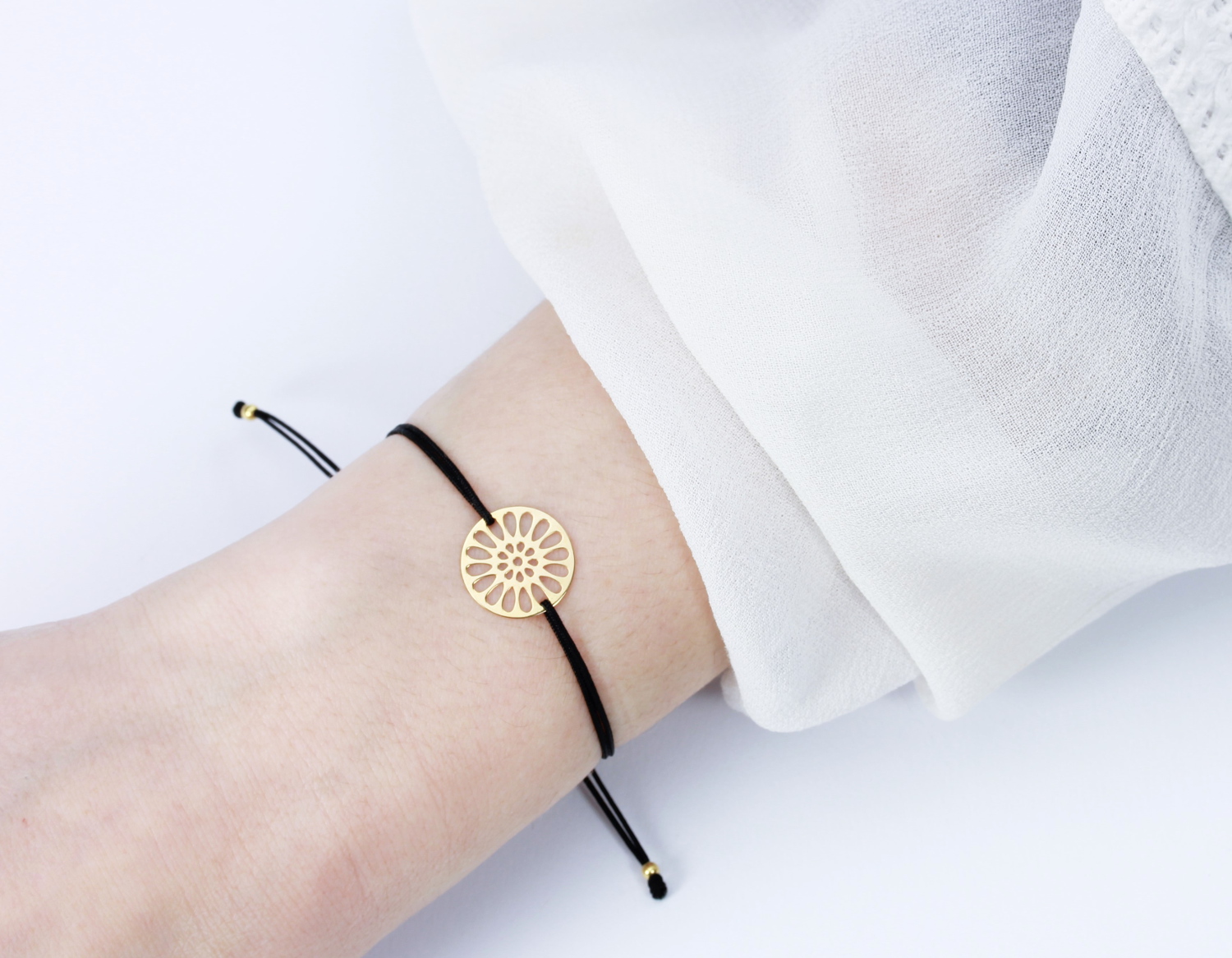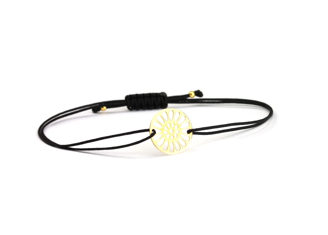 Armband Mandala Blume Symbol Gold-Schwarz 925 Silber vergoldet |Schmuck Freundschaftsarmband