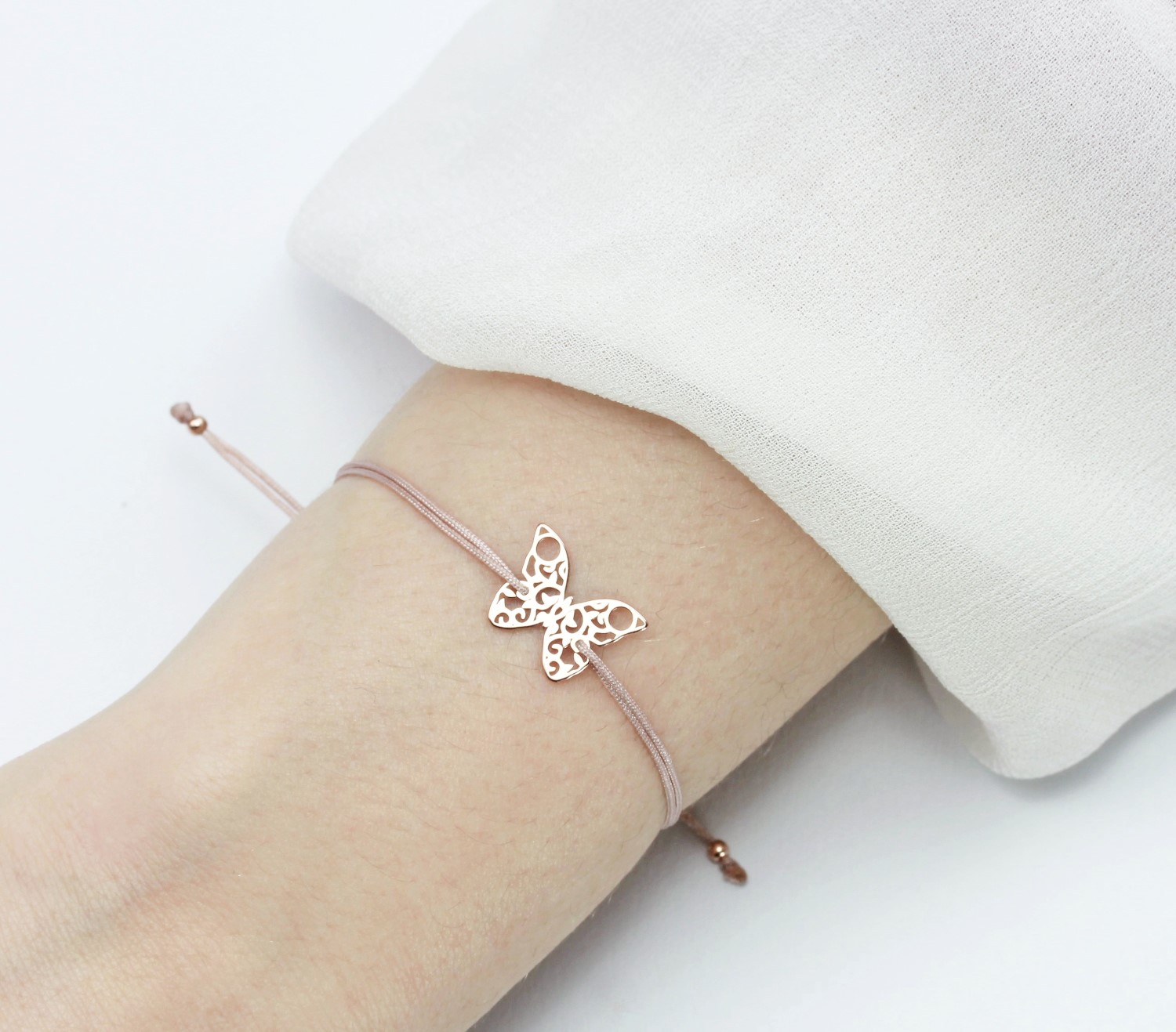 Armband Schmetterling 925 Silber vergoldet - Nude | Butterfly Charm Textilarmband Schmuck