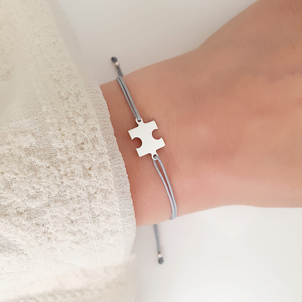 Zartes Armband in Grau mit einem 925 Silber Puzzlestück-Element.