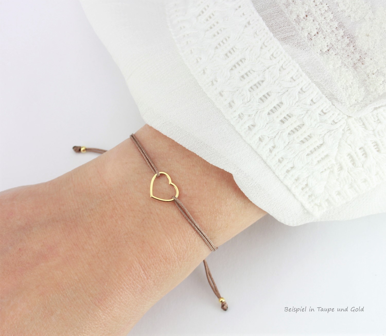 Die perfekte Geschenkidee für die beste Freundin oder deine Trauzeugin sind diese zarten und filigranen Freundschaftsarmbänder, handgemacht aus Textil in Nude und geschmückt mit zwei Herzen aus 925 Silber rosevergoldet.