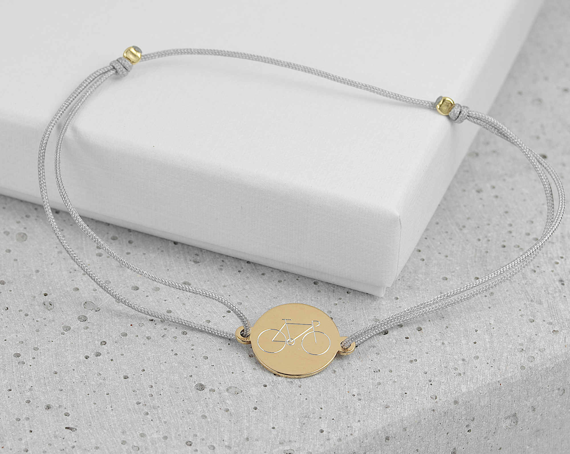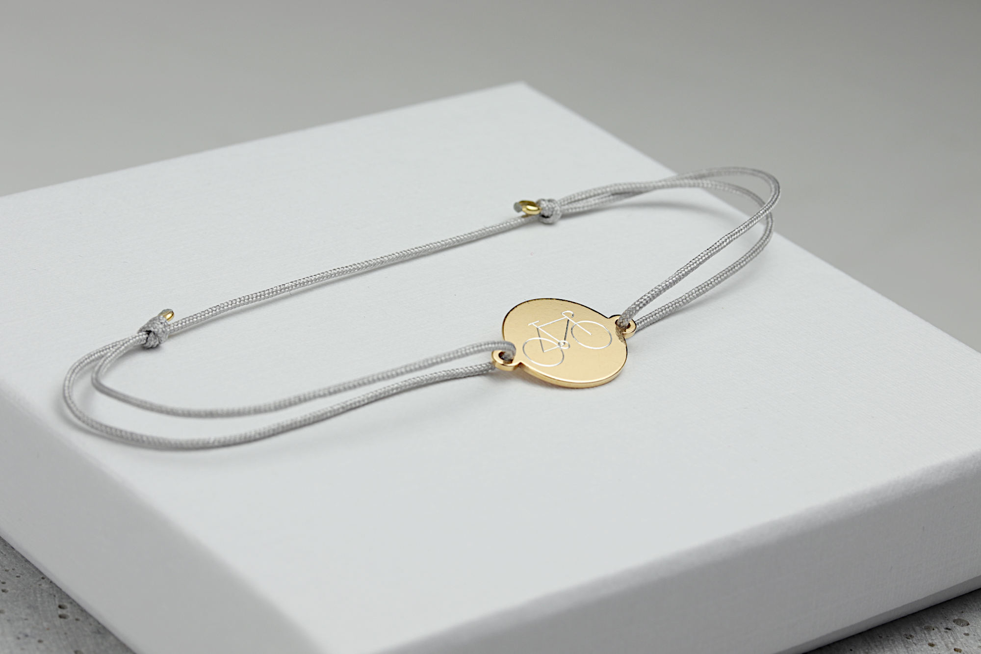 Wunschgravur Textilarmband in Hellgrau mit zwei seitlichen verstellbaren Ziehverschlüssen.