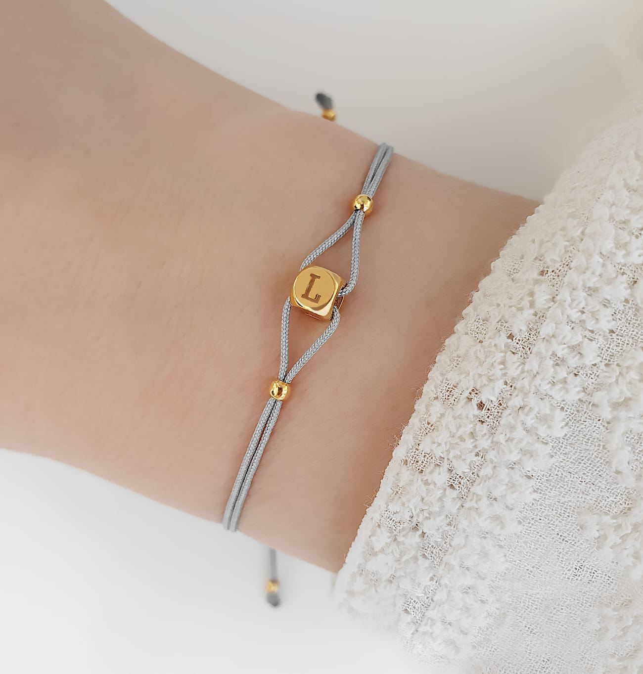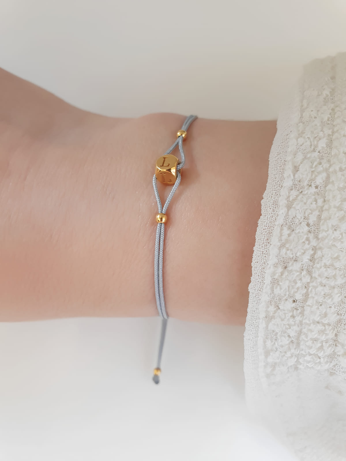 Würfel Armband mit Initial - Bändchen Wunsch Buchstabe