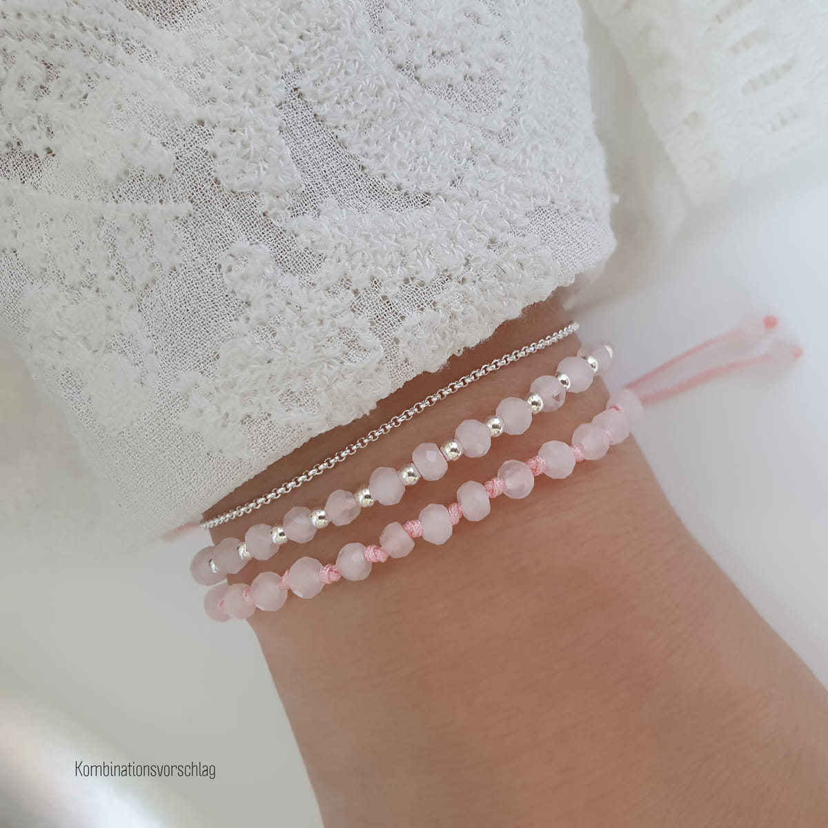 Rosenquarz 925 Silber Armband handgemachtes Makramee Bändchen