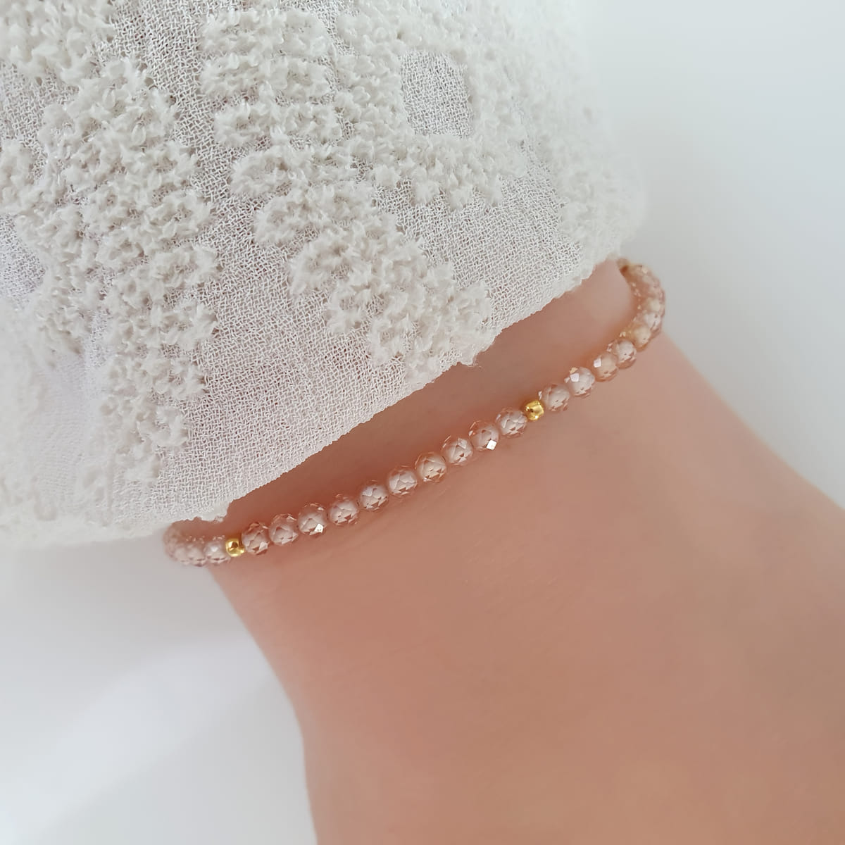 Zirkonia Armband mit 3 mm facettierten Perlen von Hand geschmückt.