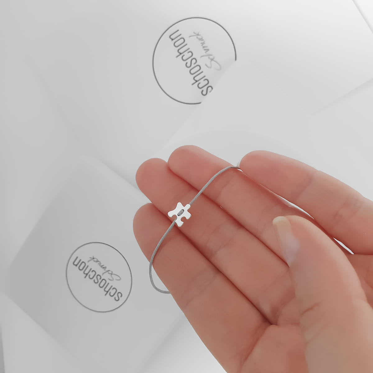 Mini Puzzle Freundschaftsarmband - 925 Silber - Grau