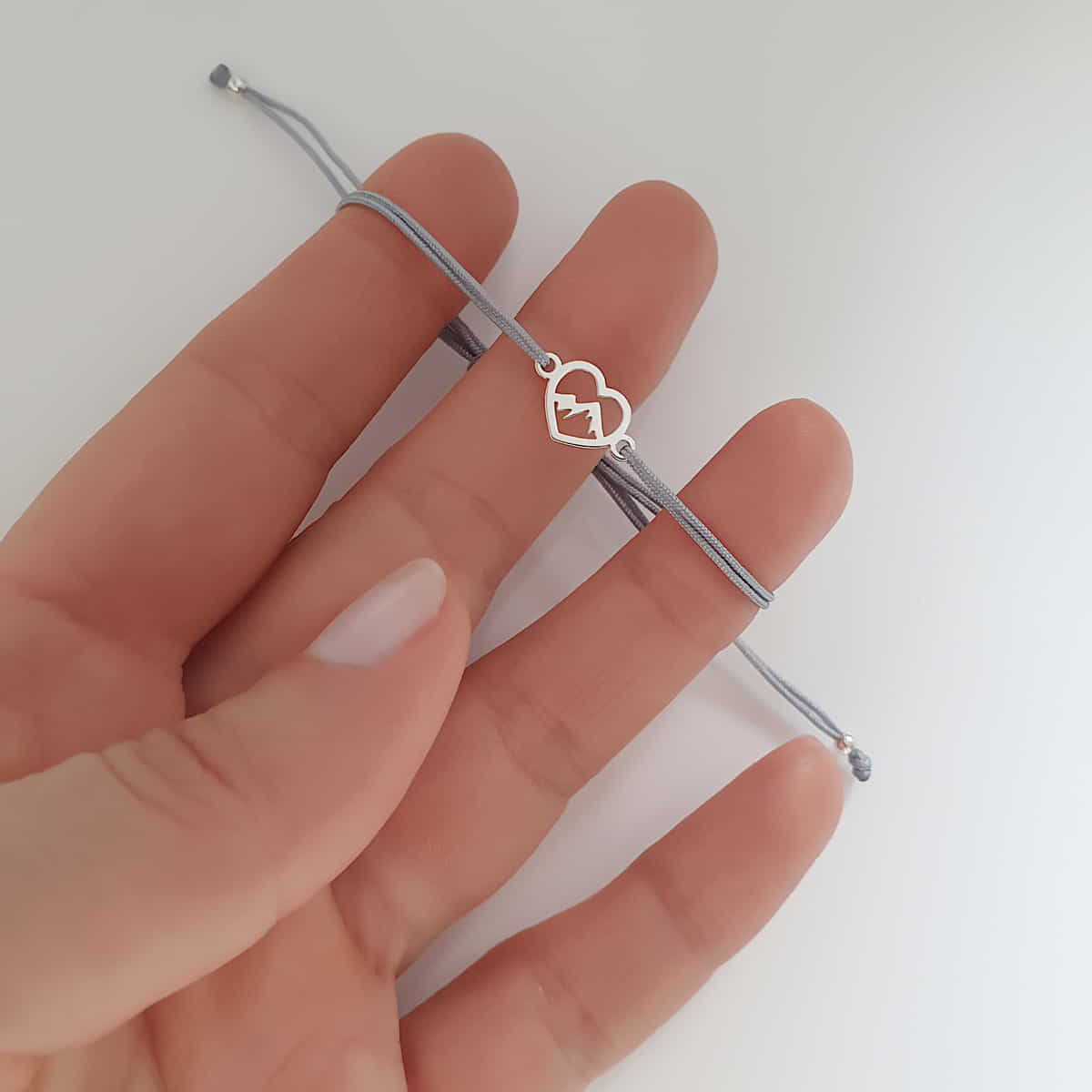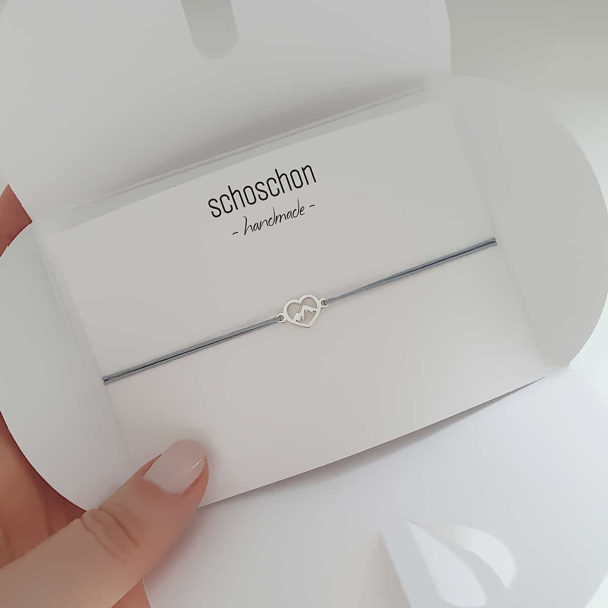 Produktinformationen "Minimalistisches Armband Herz Berge 925 Silber-Grau"