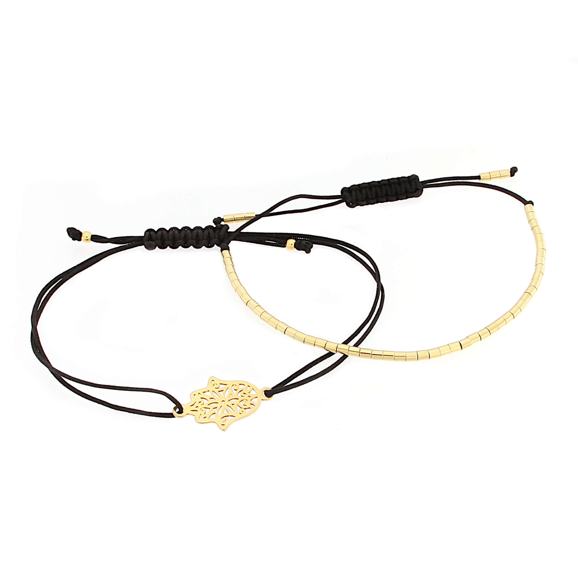 Armband Set Fatimas Hand / Hamsa Tubes 925 Silber vergoldet Schwarz-Gold