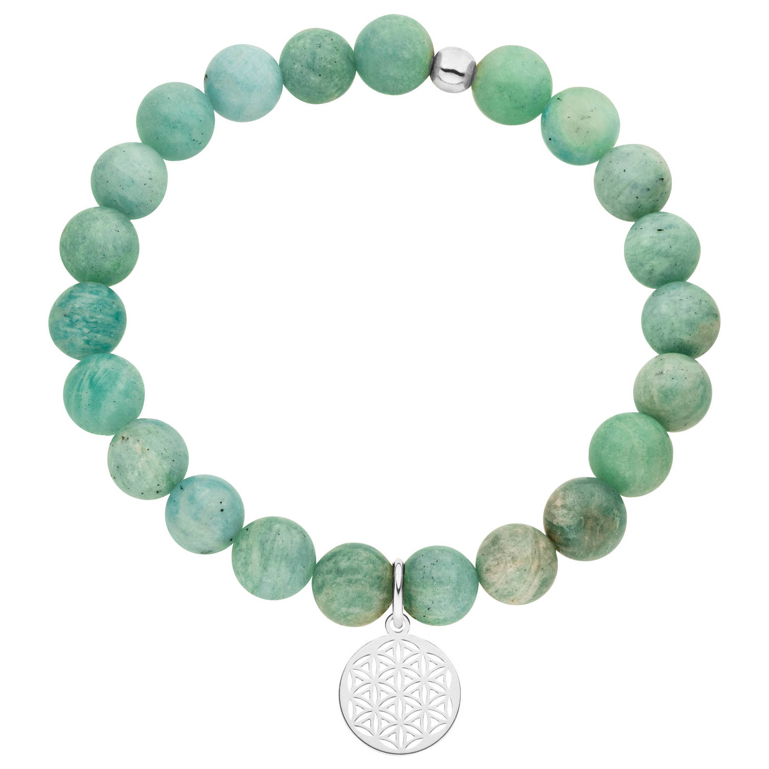 Produktinformationen "Amazonit Blume des Lebens Armband 925 Silber vergoldet - Naturstein elastisch"