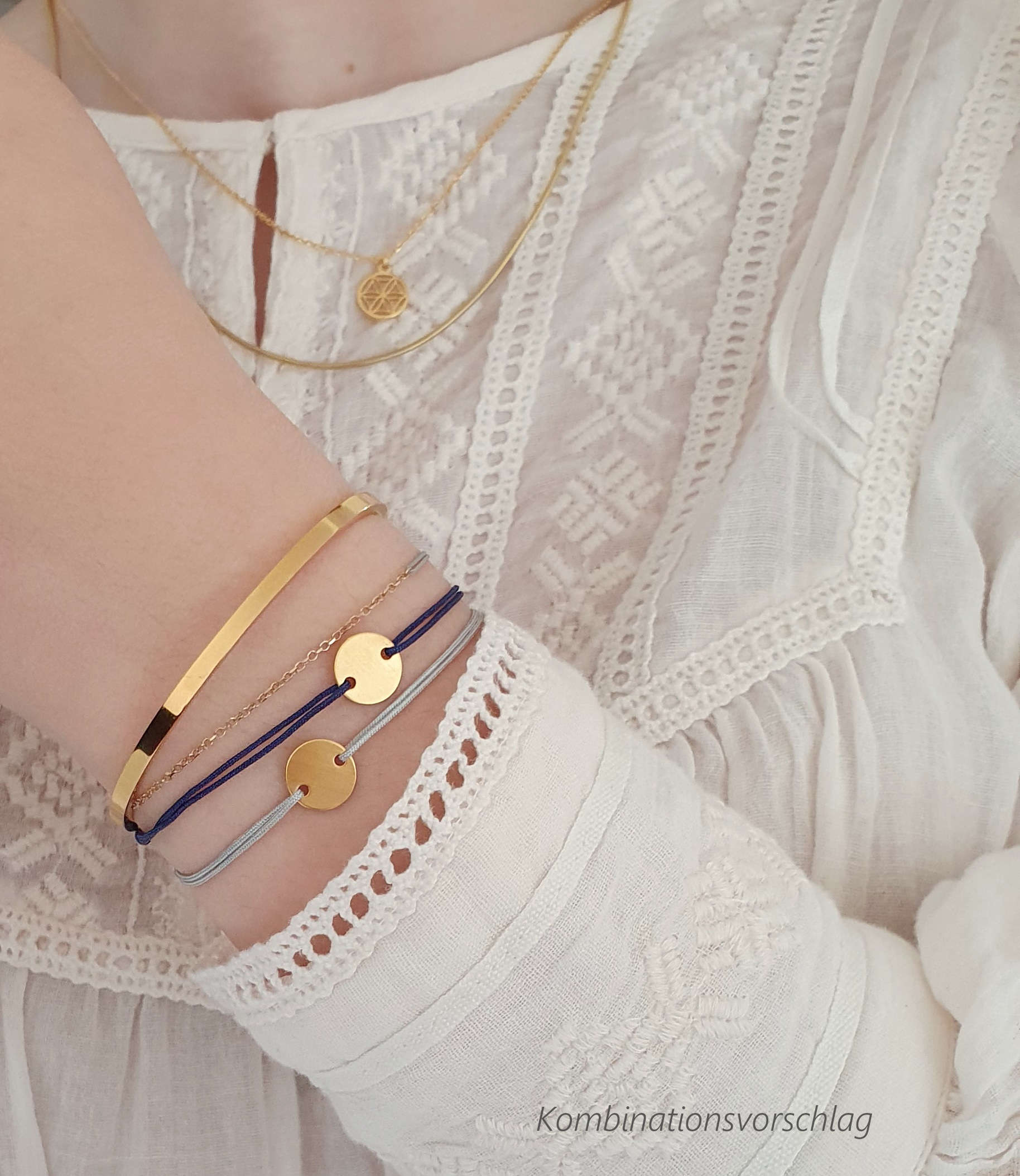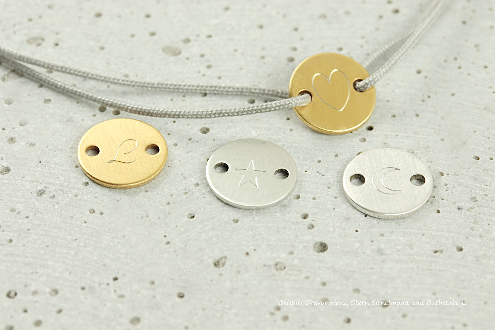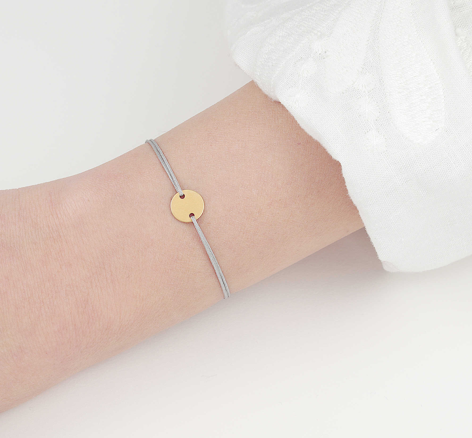 Produktinformationen "Armband Plättchen 925 Silber vergoldet-Hellgrau-individueller Gravur ø 10 mm-Schmuck Minimalistisch"