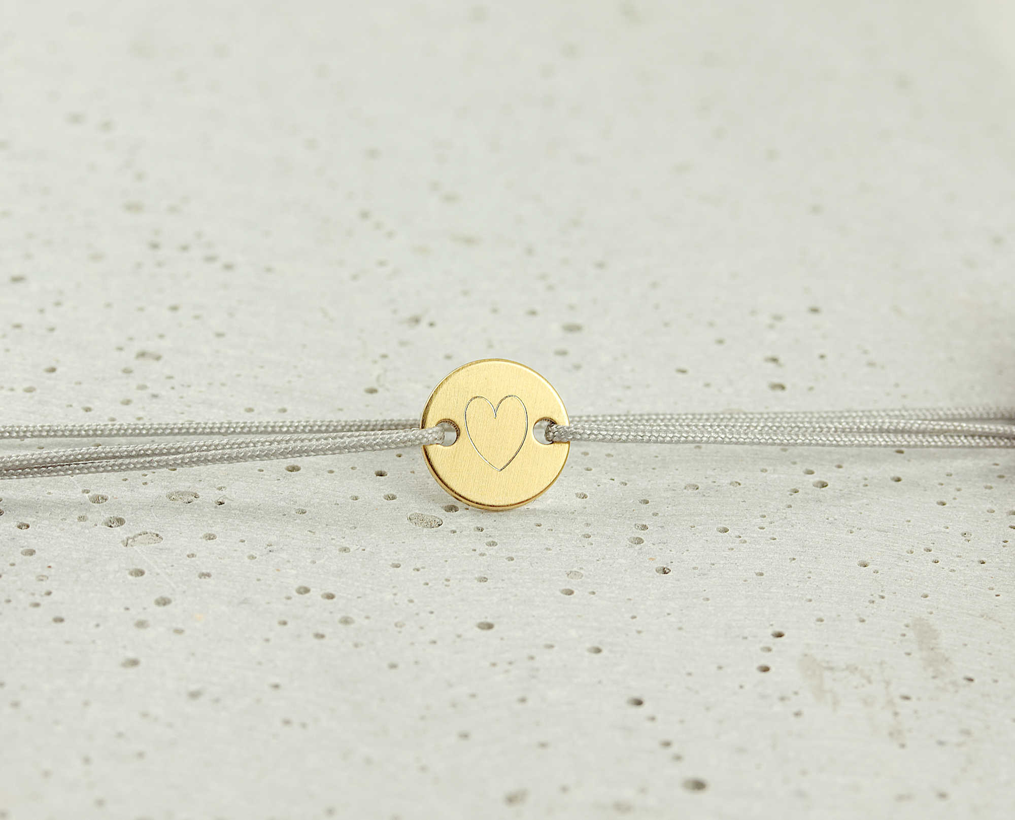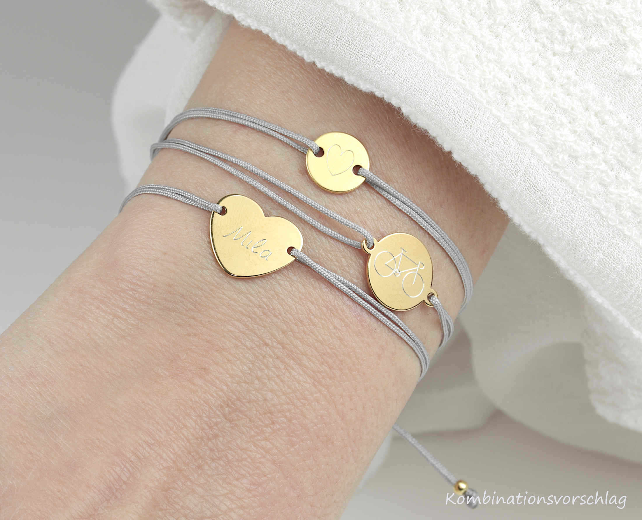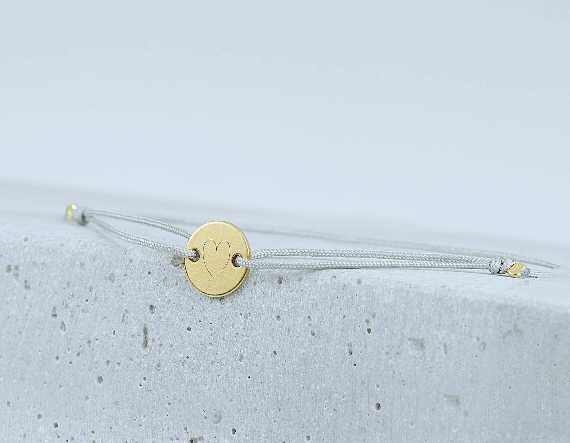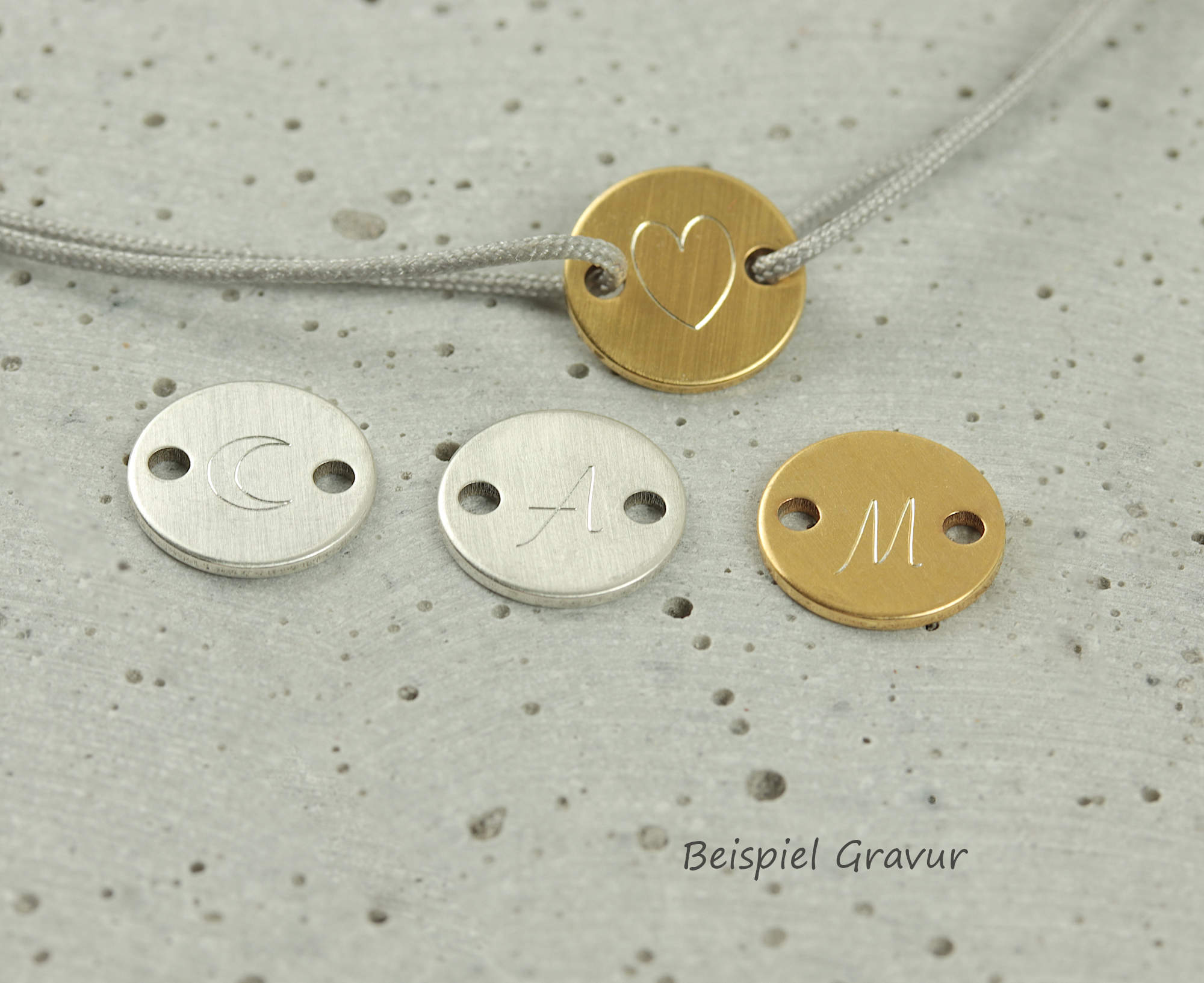 Produktinformationen "Armband Plättchen 925 Silber vergoldet-Hellgrau-individueller Gravur ø 10 mm-Schmuck Minimalistisch"