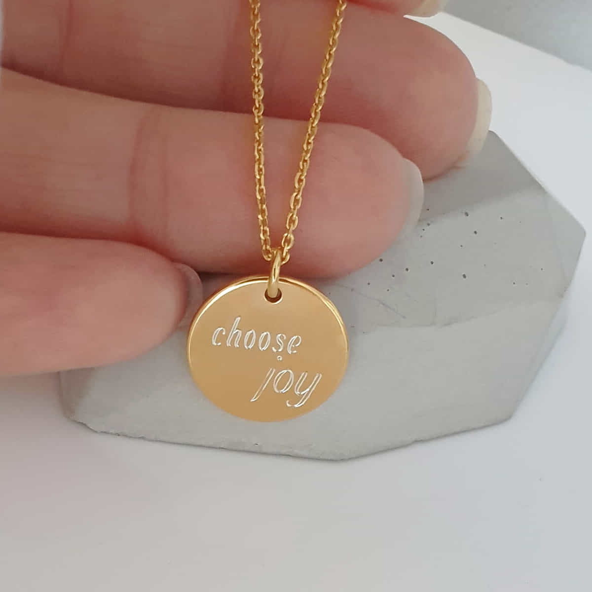 ♥ Zierliche „choose joy“ Gravur auf dem Anhänger