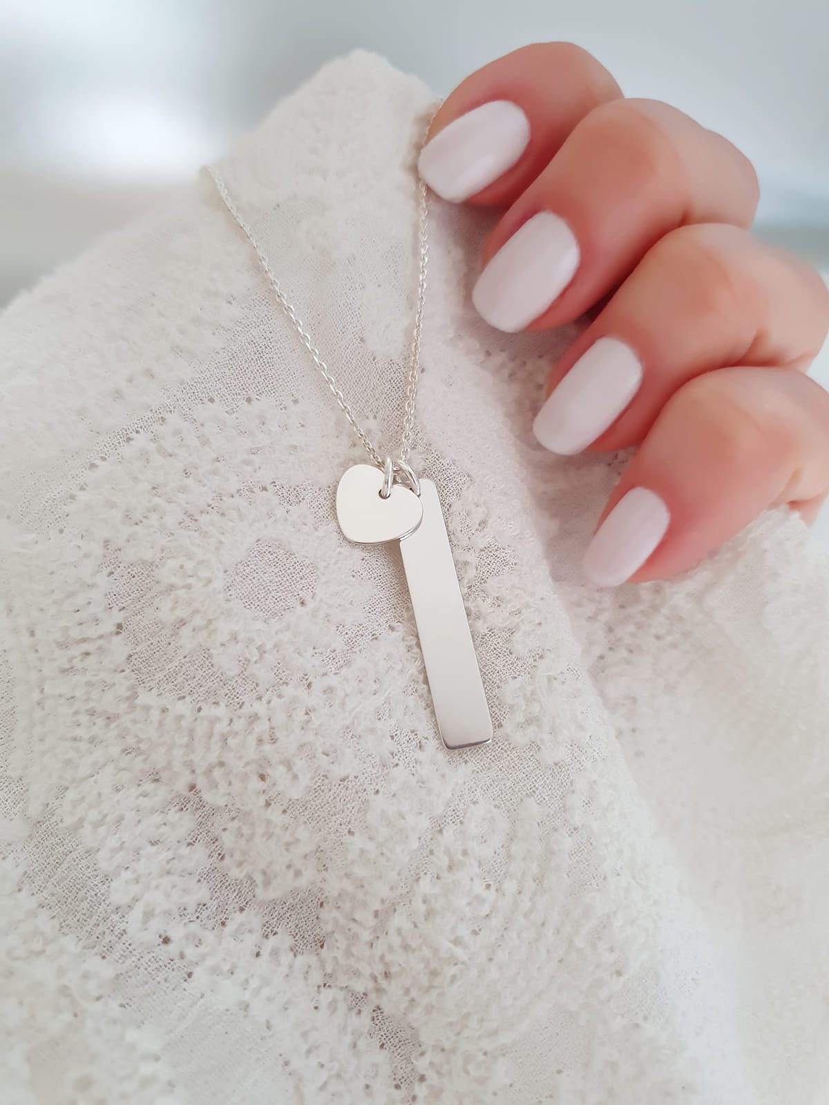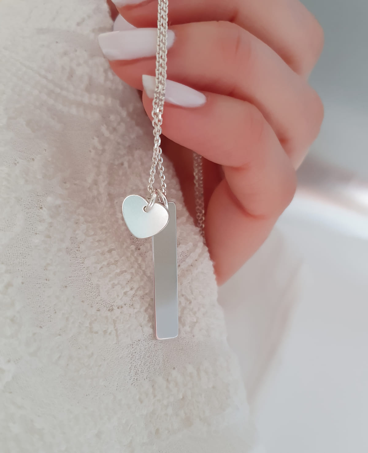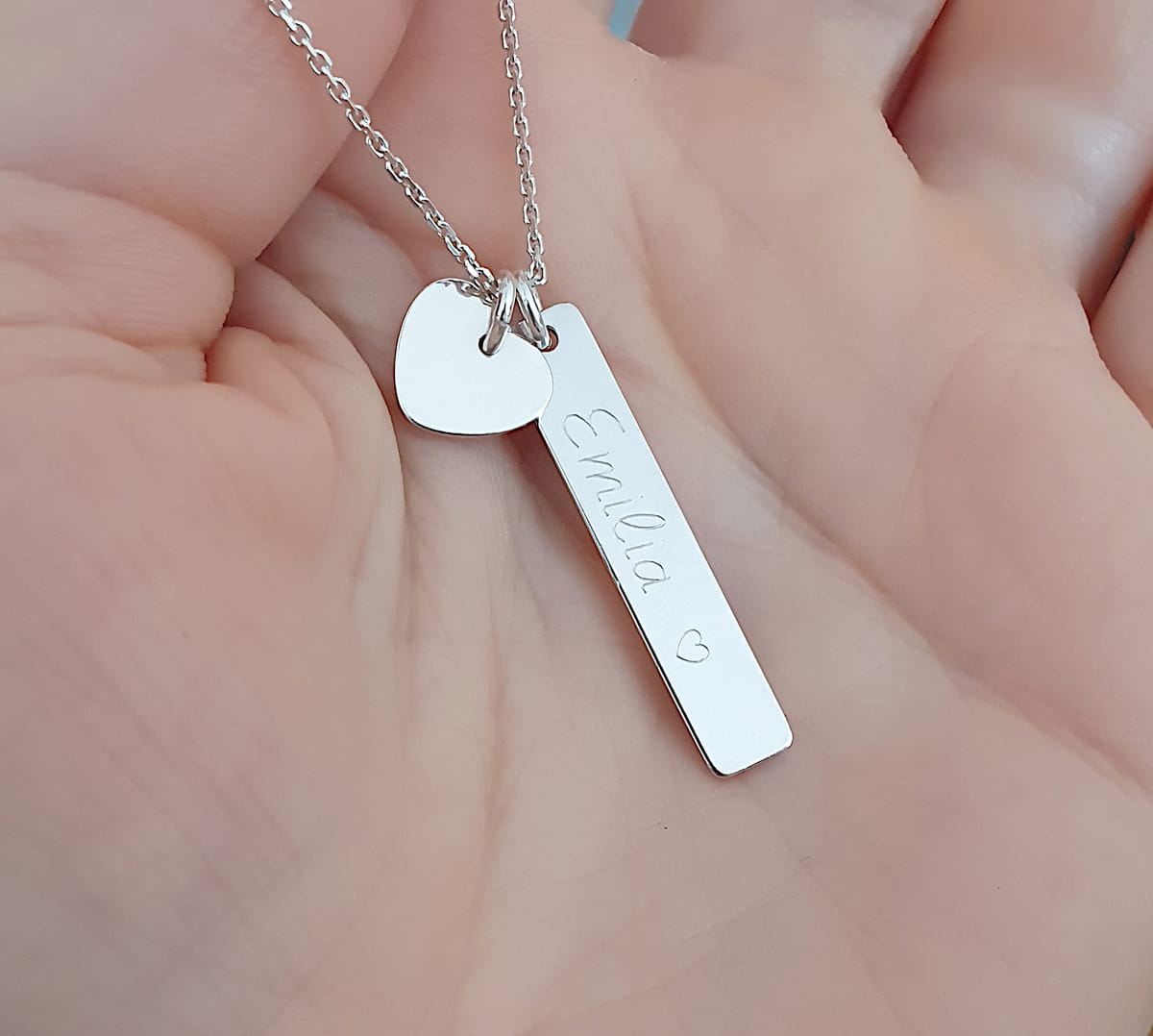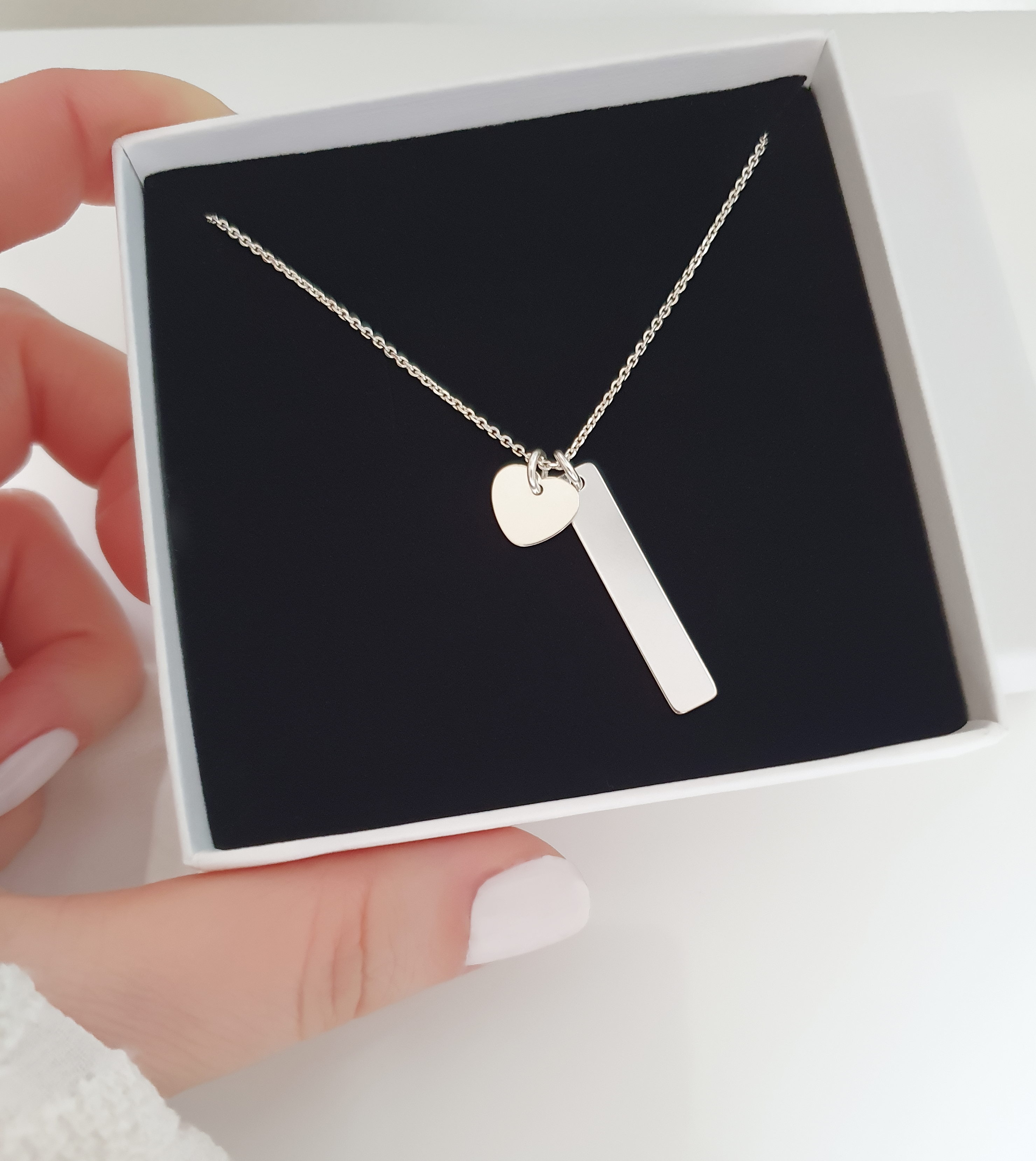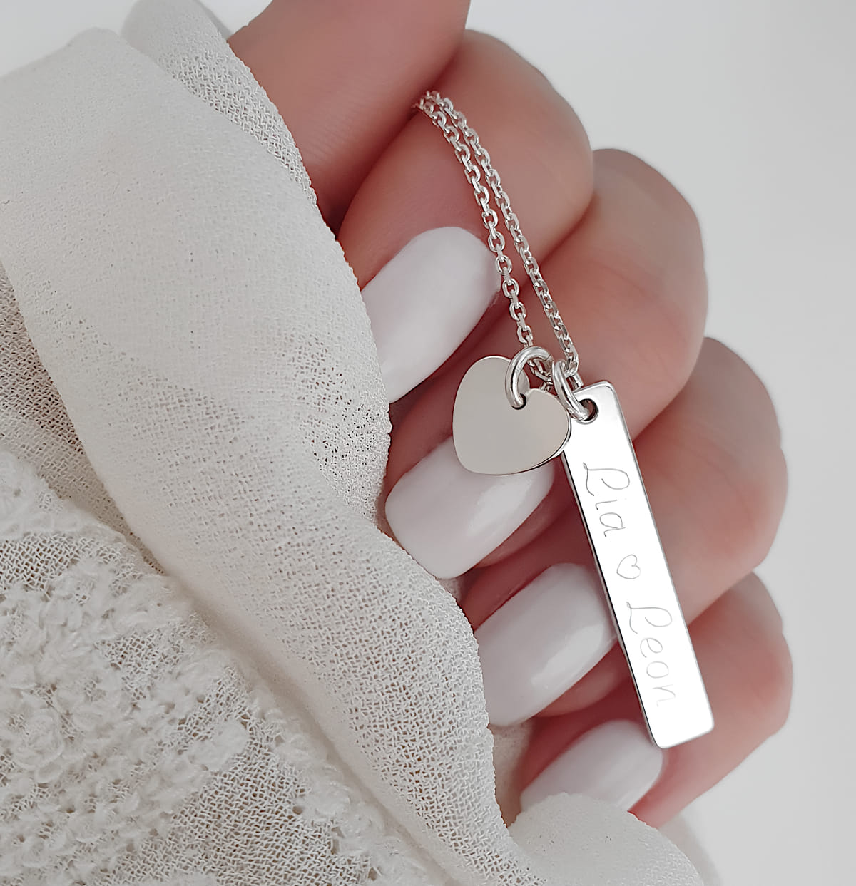 Gravierbare Halskette - rechteckigen Anhänger und Herz-Charm