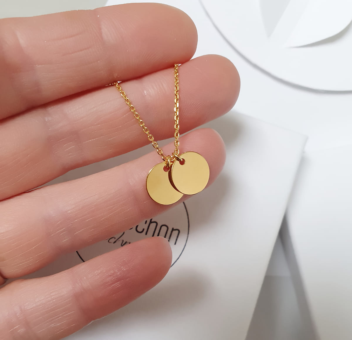 Diese personalisierte Halskette aus vergoldetem 925er Silber mit den kleinen runden Anhängern (8 mm) ist nicht nur eine schöne Geschenkidee für Ostern oder Muttertag, sondern auch für andere besondere Anlässe wie Geburtstage, Hochzeiten oder Jahrestage.