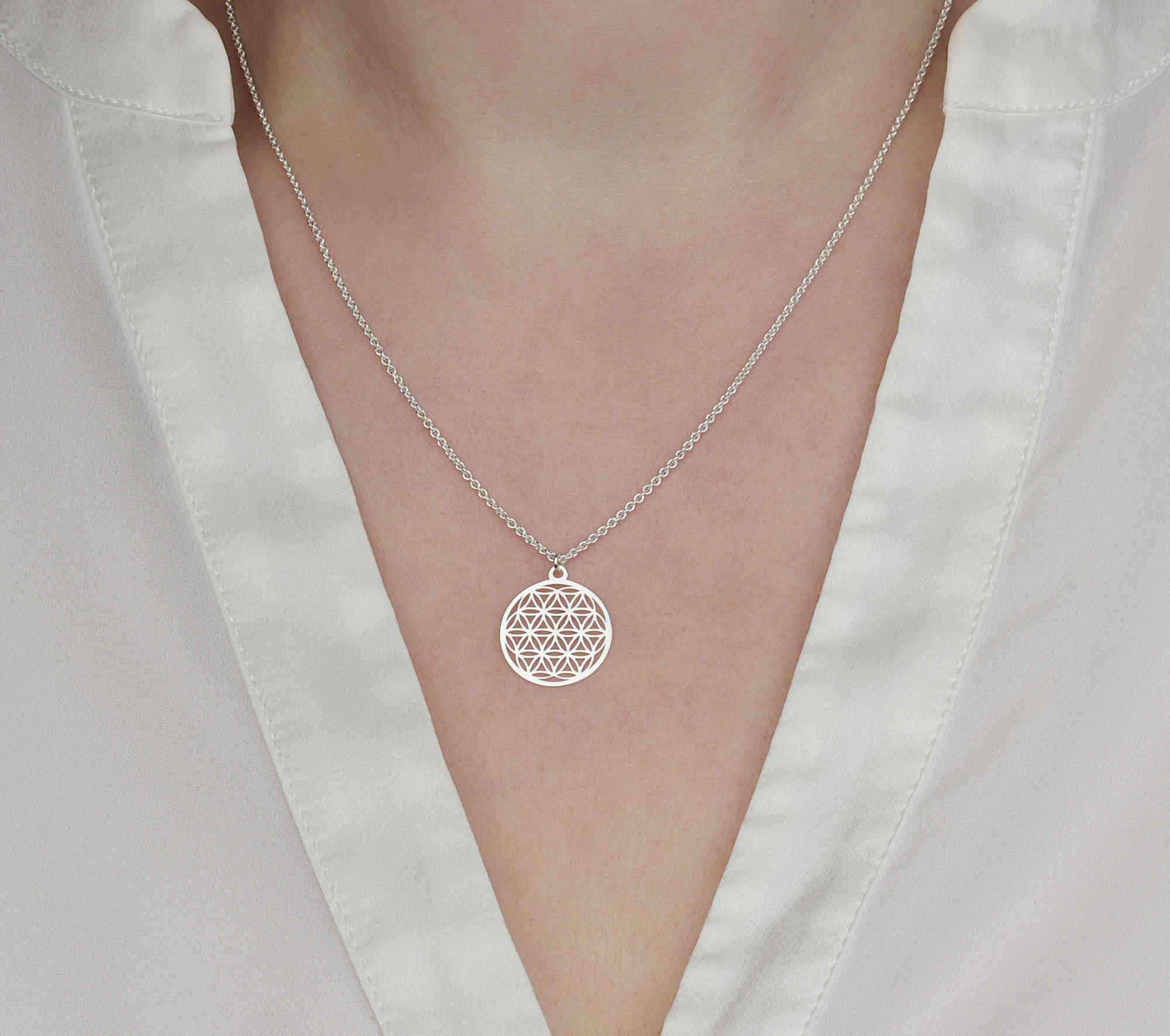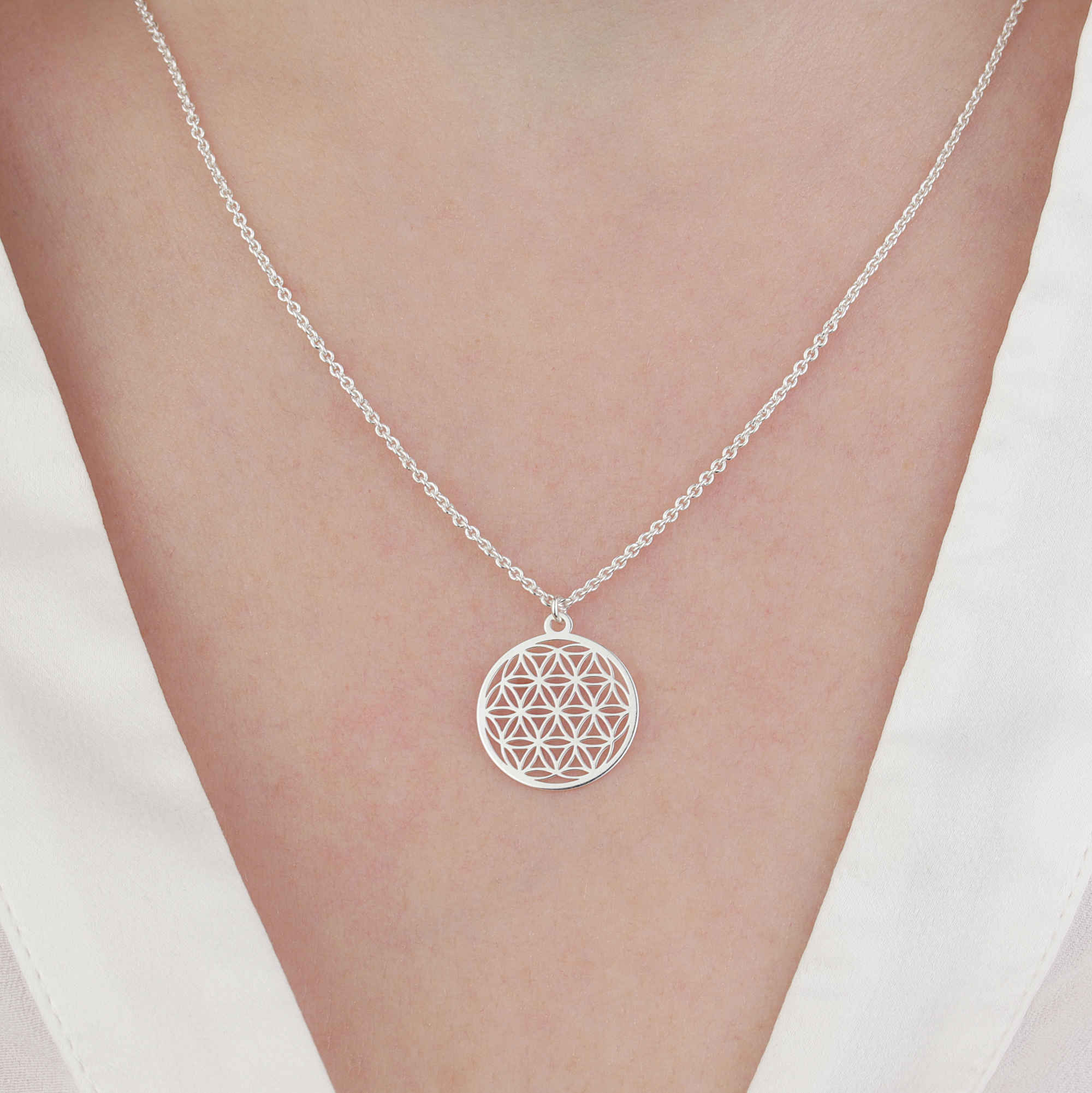Halskette mit Blume des Lebens Anhänger 925 Silber ø 15 mm | Kette Schmuck Lebensblume Silberkette
