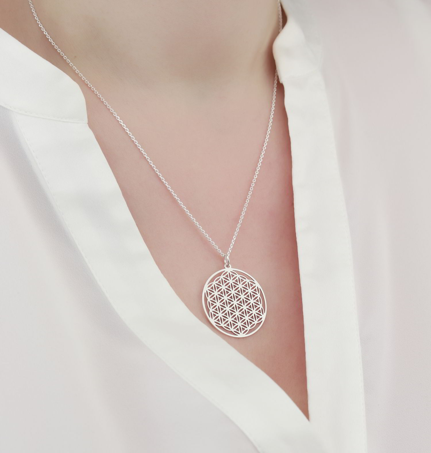 Produktinformationen "Halskette Lebensblume Anhänger 925 Silber ø 25 mm Model 0.4 | Blume des Lebens Silberkette Kette"