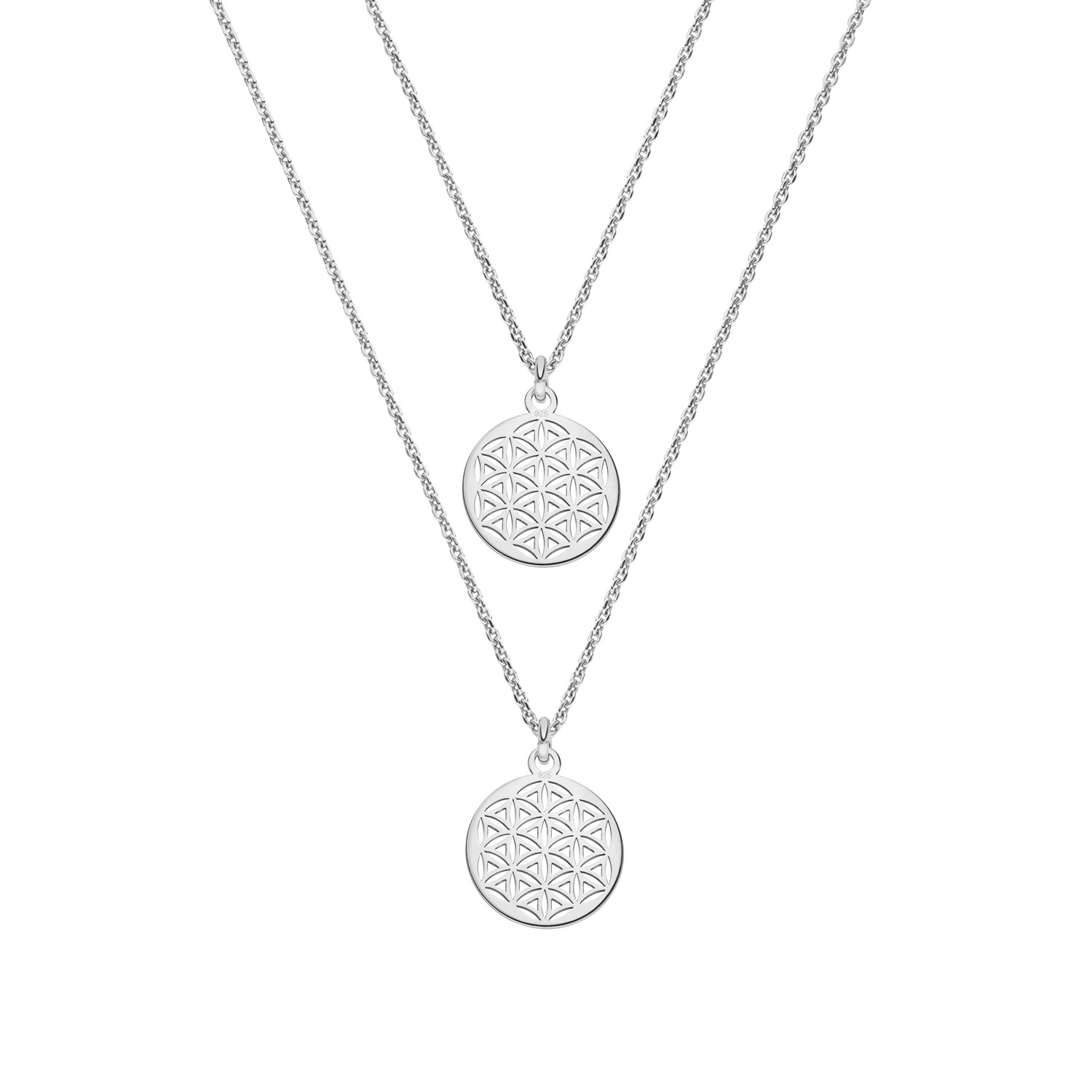 Produktinformationen "Mutter Tochter Lebensblume Halsketten Set 925 Silber vergoldet ø 12 mm | Schmuck Blume des Lebens"