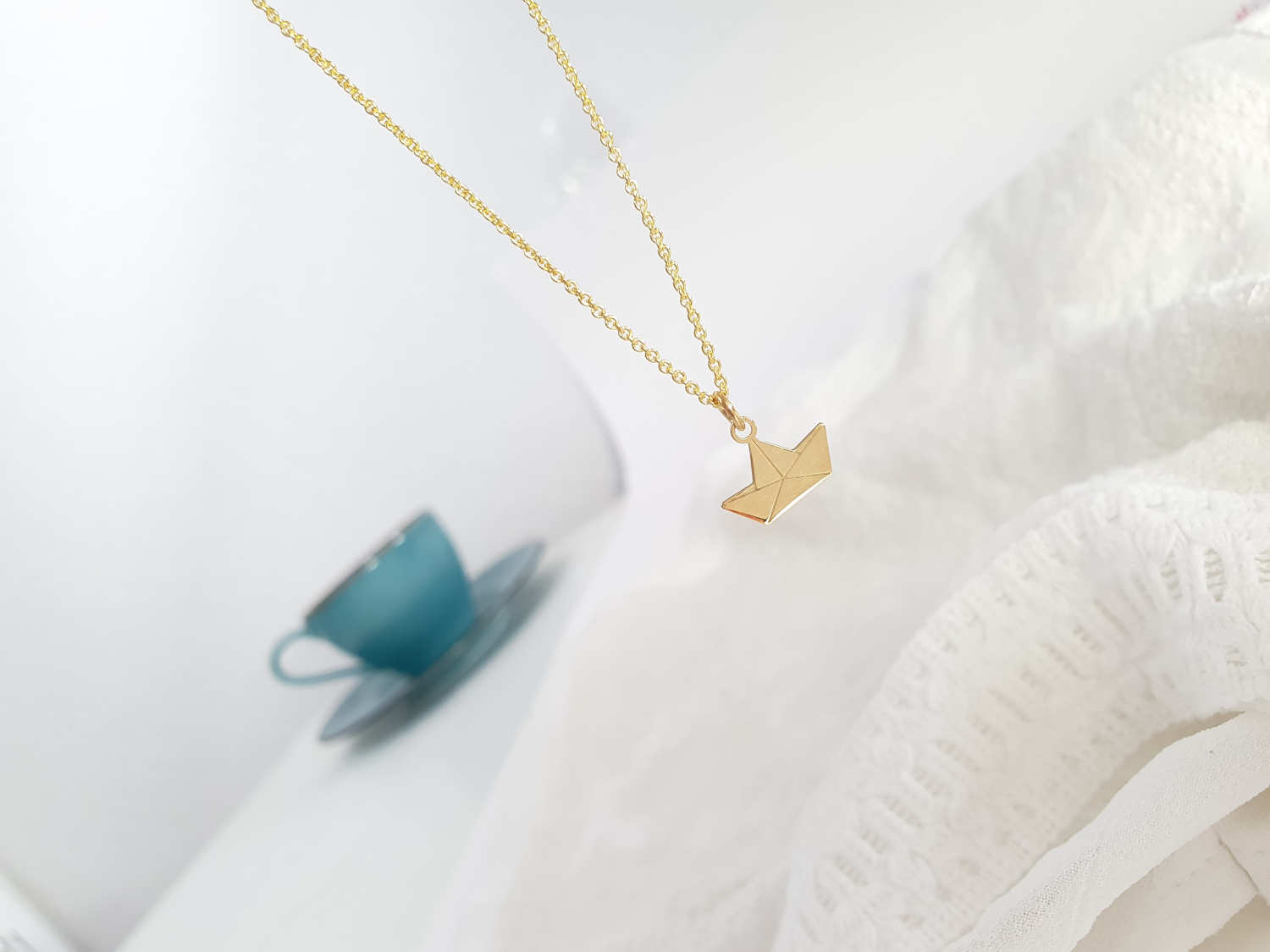 Produktinformationen "Halskette Papierboot Silber vergoldet | Kette Boot Papierschiff Origami Schmuck"