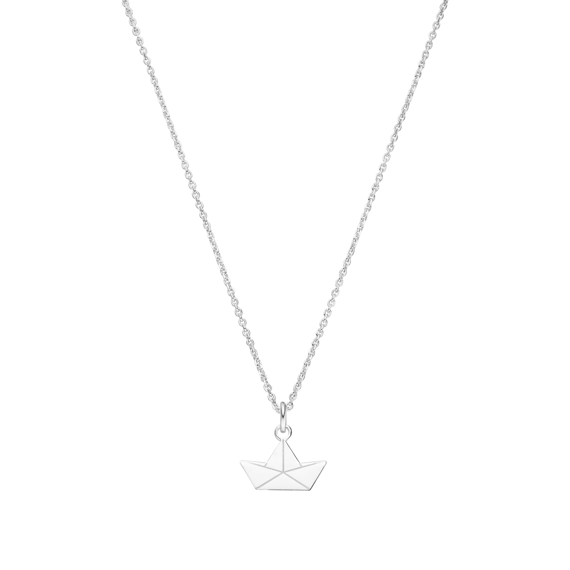 Eine feine Kette mit einem Papierschiff-Anhänger aus 925 Silber. Die Silberkette mit dem Papierschiffchen ist in den Sommertagen die perfekte Ergänzung für deinen maritimen Look.