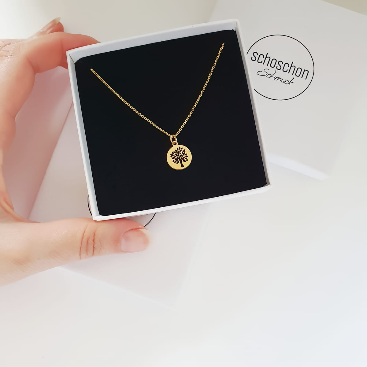 Halskette Anhäger Lebensbaum 925 Silber vergoldet | Kette Baum des Lebens