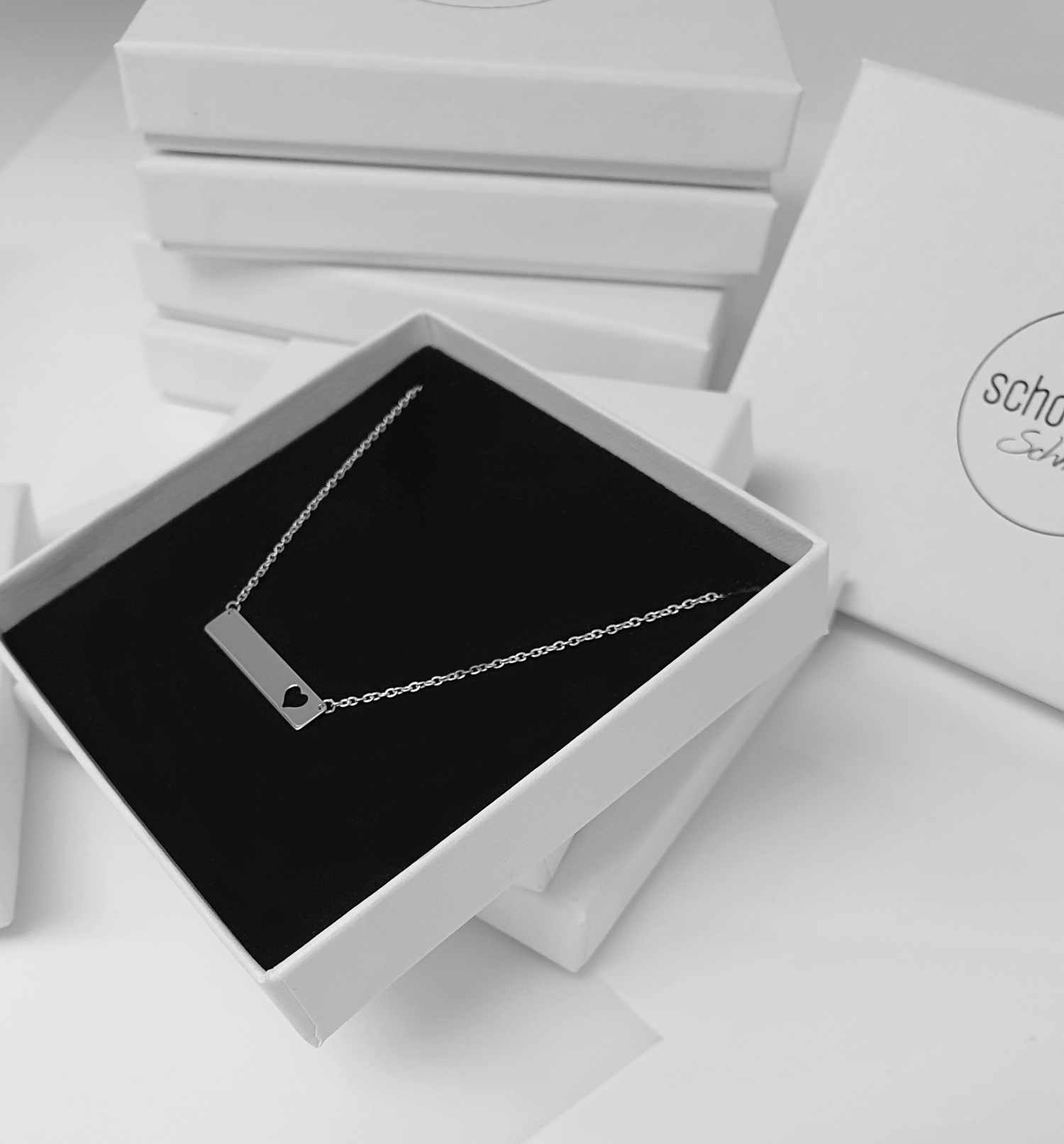 Jedes Schmuckstück wird in einem weißen Geschenkumschlag mit Herzverschluß verpackt.