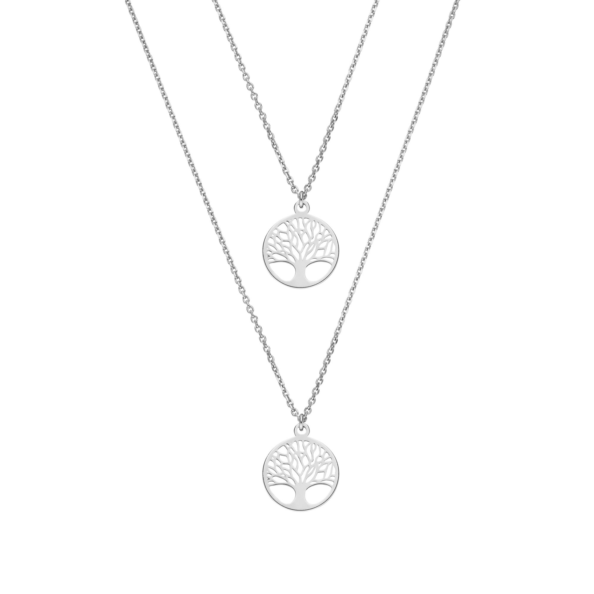 Mutter Tochter Lebensbaum Halsketten Set 925 Silber vergoldet ø 12 mm | Schmuck Baum des Lebens