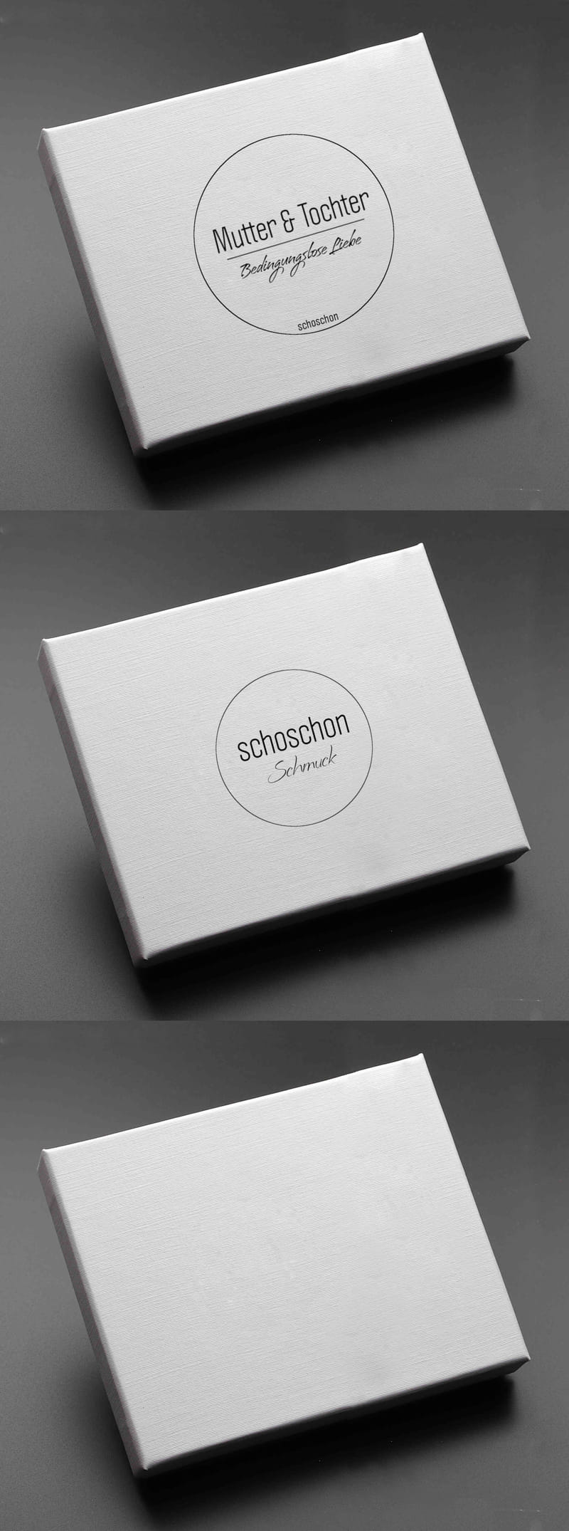 Jedes Schmuckstück wird in einer weißen Geschenkbox verpackt. Sie können aus den folgenden Optionen auswählen: Mutter-Tochter Bedingungslose Liebe, Schoschon Schmuck oder eine Box ohne Beschriftung