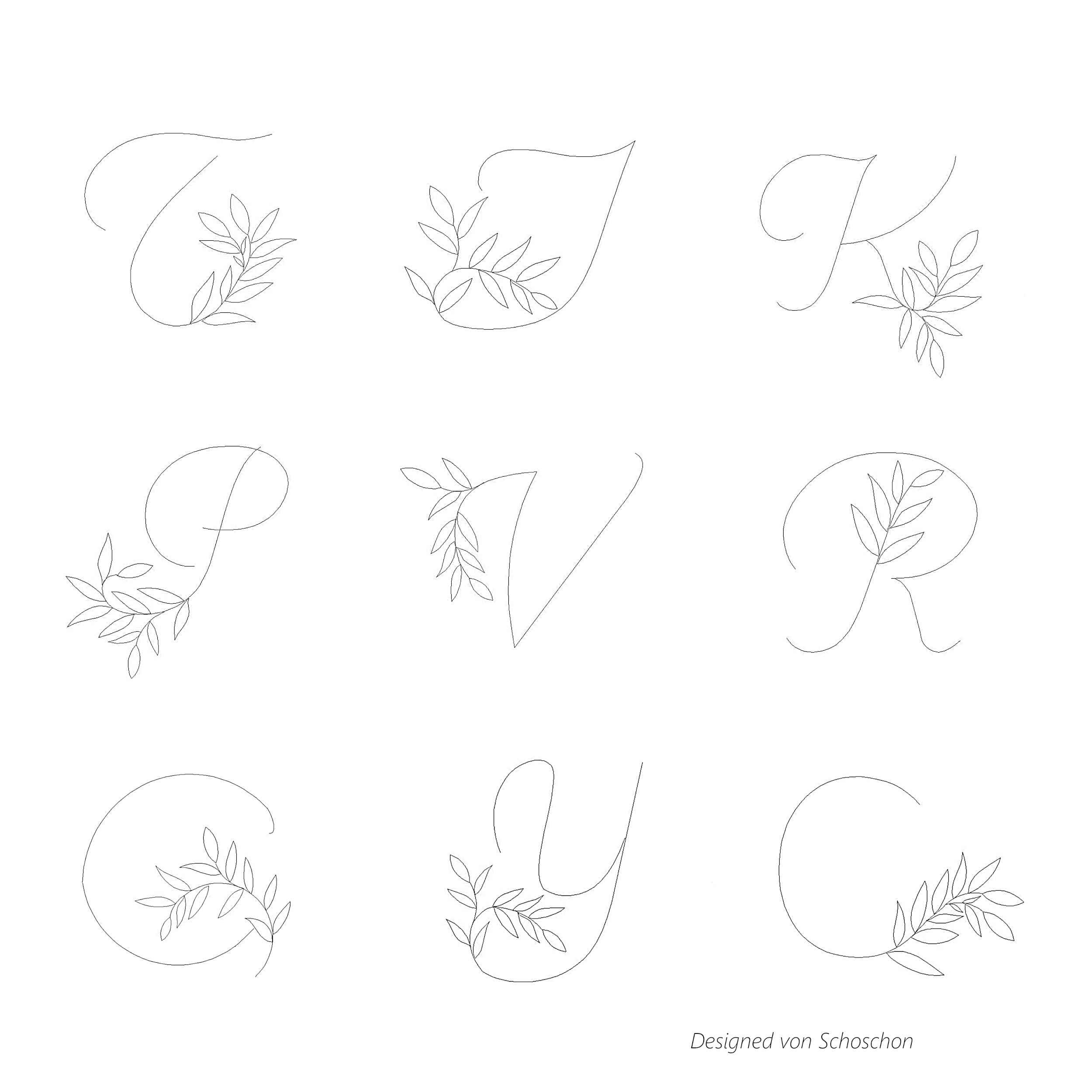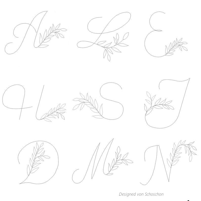 Jeder Buchstabe wurde individuell mit einer einzigartige Blätterranke, die jeweils einzeln per Hand designed wurde, versehen.