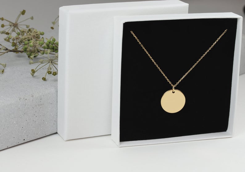 Eine zarte Kette mit einem runden Plättchen Anhänger auf der dein Wunsch-Buchstabe geziert wird.Gestalte deinen Anhänger mit dem Anfangsbuchstaben deiner Liebsten oder lasse ihn mit deiner eigenen Initiale gravieren.Diese schlichte und elegante Gravur-Halskette passt sich zu deinem Lieblingsoutfit oder zu deinem trendingen Layering-Look. Bitte teile uns bei deiner Bestellung dein Wunschinitial sowie die Länge der Kette mit. Die Kette ist in den folgenden Längen verfügbar: 45 oder 50 cm. Gravurschmuck liegt voll im Trend! Deine individuelle Gravur wird mit einer Diamantgravur realisiert und wird mittig und zentriert ausgerichtet. Diamantgravur: Bei diesem Gravurverfahren wird das Motiv mit einer Diamantspitze in die Oberfläche eingeritzt. Dadurch entsteht ein glänzendes Gravurergebnis, was noch dezent und persönlich ist. Bitte bedenken Sie, dass wir gravierte Produkte nicht umtauschen können. Größe/Maße Ankerkette ca. 1,1 mm breit Länge: 45 cm (falls keine andere Länge ausgewählt wurde) Anhänger : 16 mm Verwendete Materialien Kette / Anhänger: 925 Silber vergoldet Kostenlose Geschenkverpackung Jedes Schmuckstück wird in einer weißen Geschenkbox verpackt. Zur Verfügung stehen eine Reihe von Geschenkboxen mit Botschaften für Anlässe wie Geburtstag, Weihnachten oder andere Gelegenheiten. Sie können aus den folgenden Optionen auswählen: Alles Gute zum Geburtstag, Happy Birthday, Lieblingsmensch, Ich liebe dich, Make a Wish und Frohe Weihnachten. Für weitere Wünsche nehmen Sie bitte Kontakt mit mir auf.