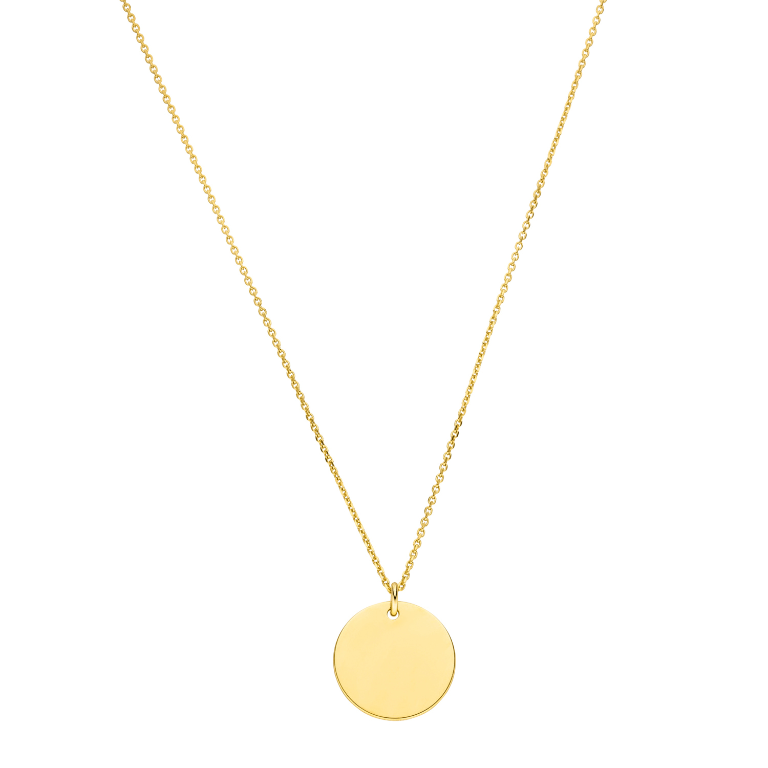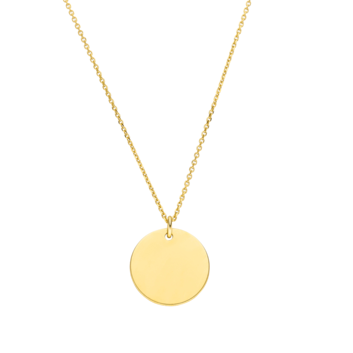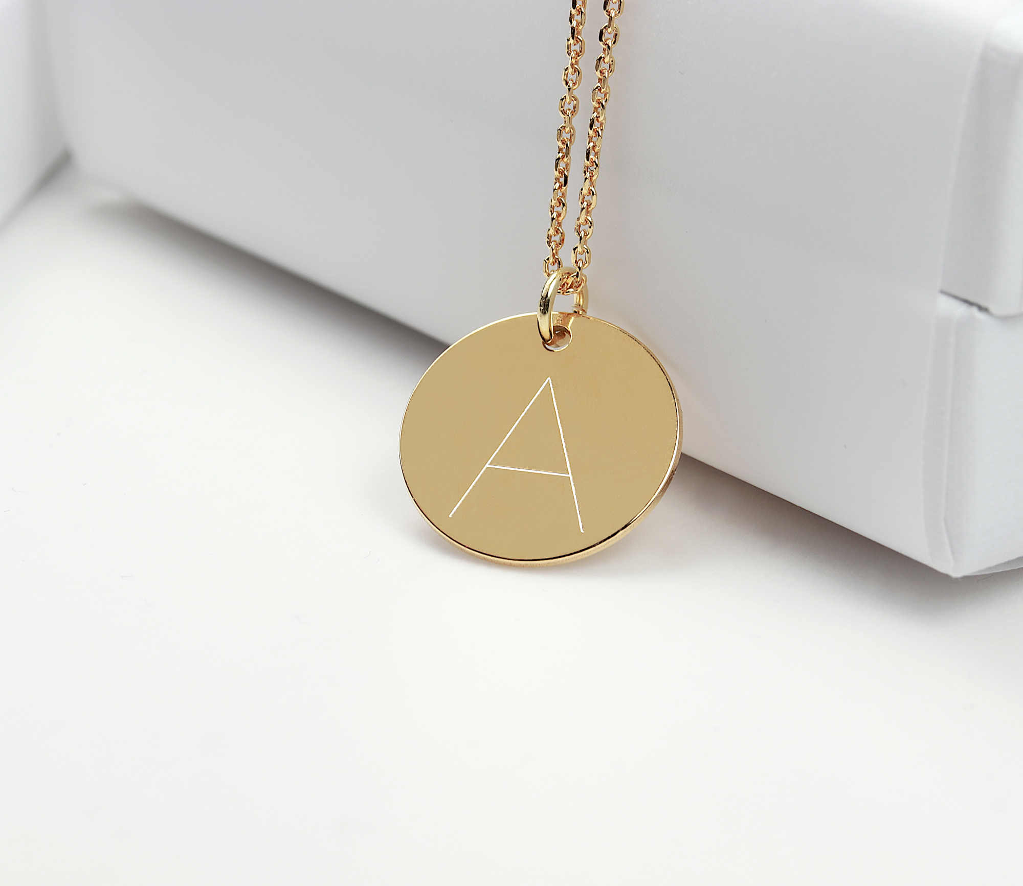 Eine zarte Kette mit einem runden Plättchen Anhänger auf der dein Wunsch-Buchstabe geziert wird.