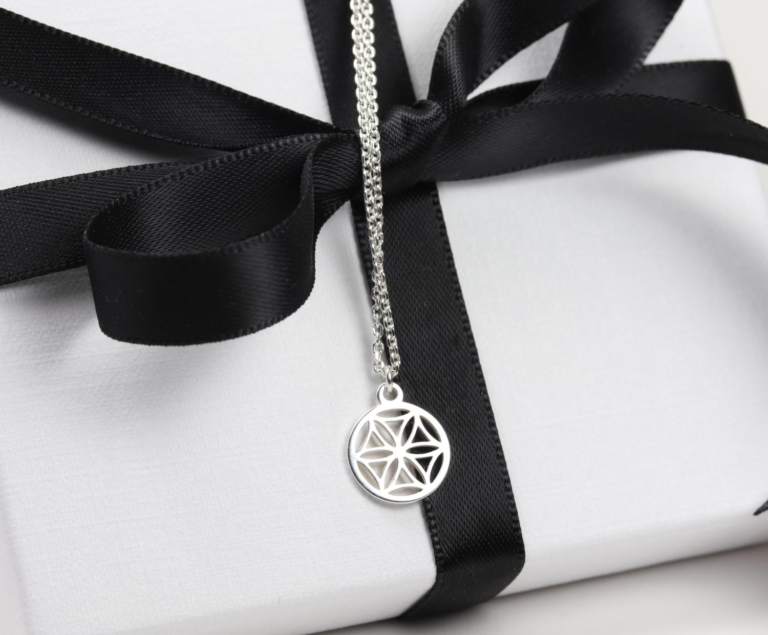 Passend zum Schmuck kannst du kostenlos auch die Lebensblume Geschenkbox oder eine andere Schmuckschachtel auswählen.