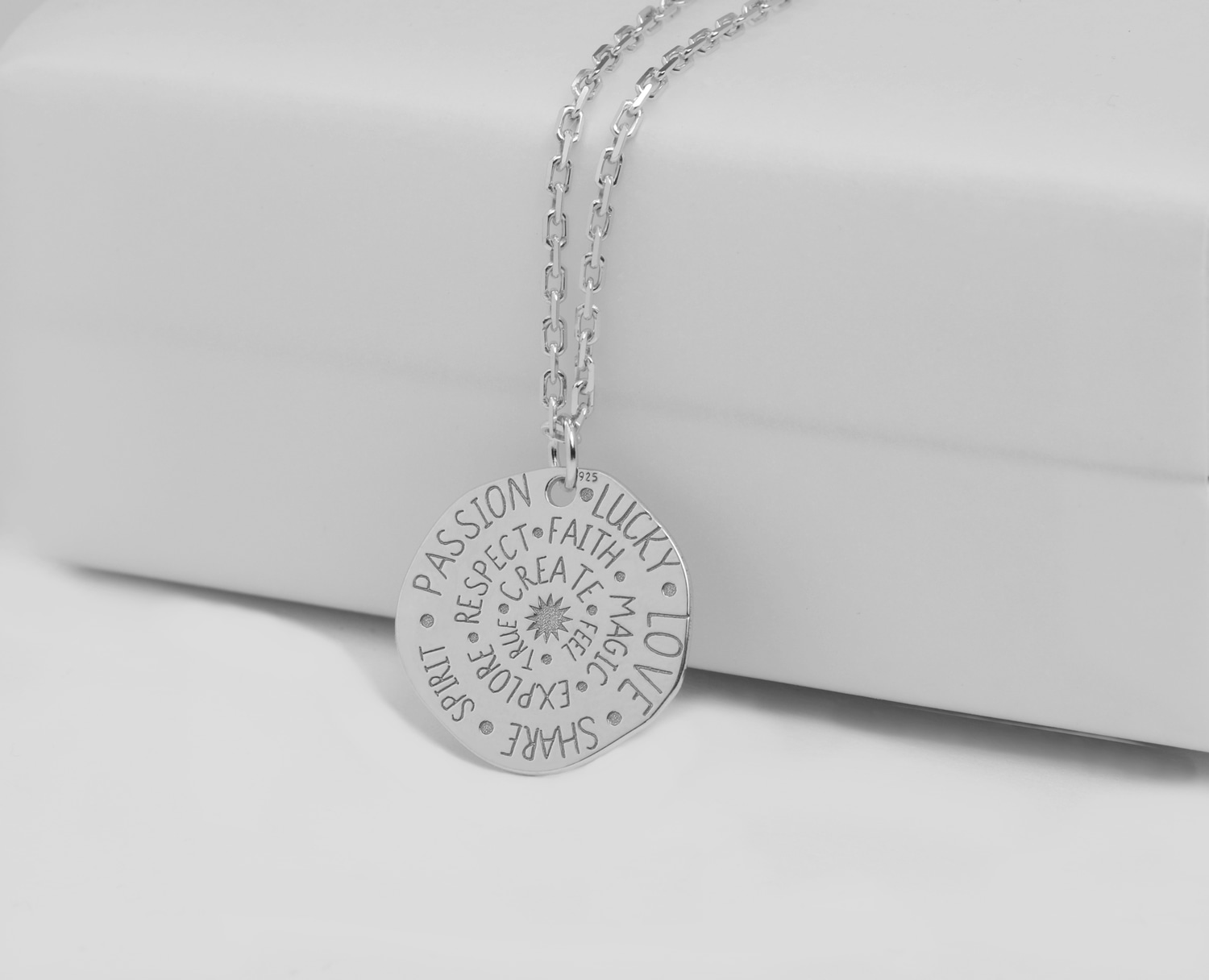 SONNE Halskette Inspiration Motivation Plättchen Anhängerkette 925 Silber Motivationskette
