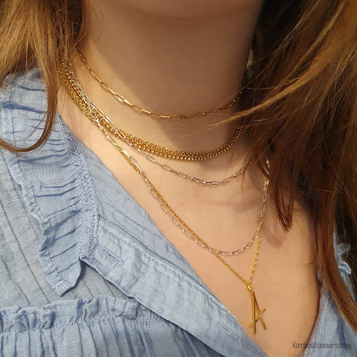 Durch die individuell verstellbare Länge eignet sich diese Halskette auch für moderne Layering-Looks.