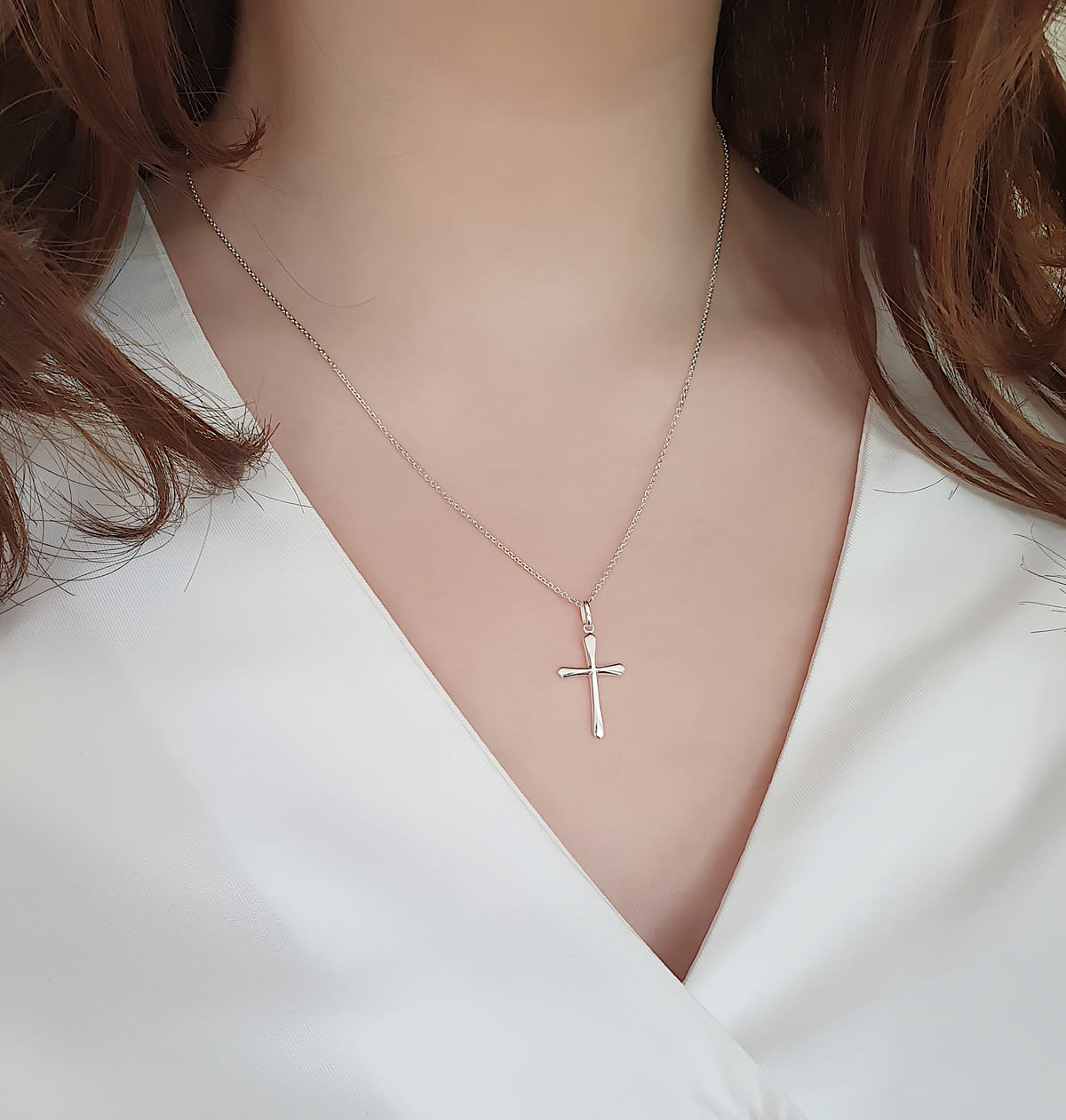Feiner christlicher Schmuck für Frauen aus Silber. Religiöser Schmuck für Frauen mit christlichen Symbolen.