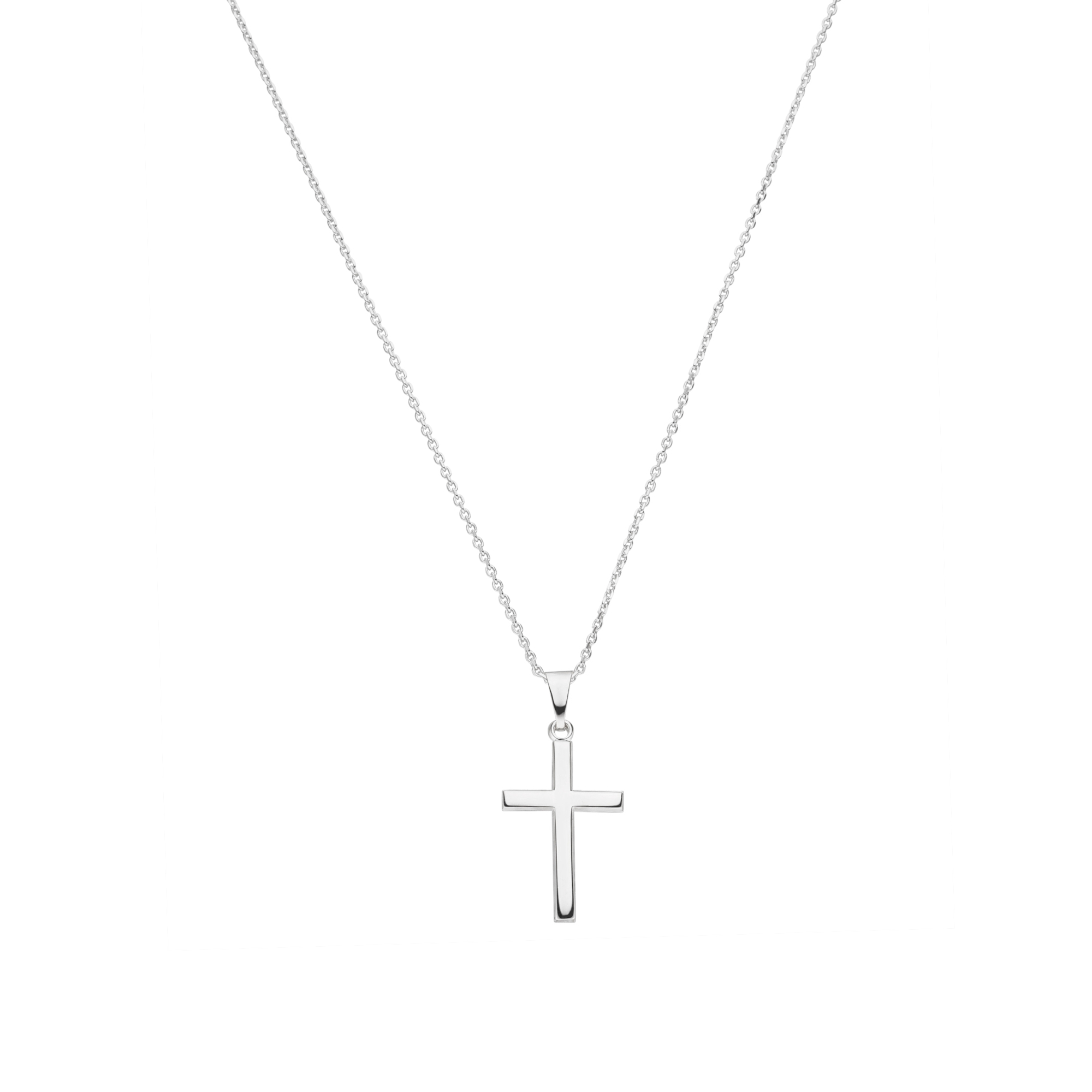 Eine feine 925 Silber Ankerkette geziert von einem schlichten Kreuz Anhänger. Ihr klassisches klares Design passt sich stilvoll an jeden Stil und Look an. Egal ob Alltags- oder Businessoutfit diese Kette ist ein geschmackvoll gewähltes Accessoire.