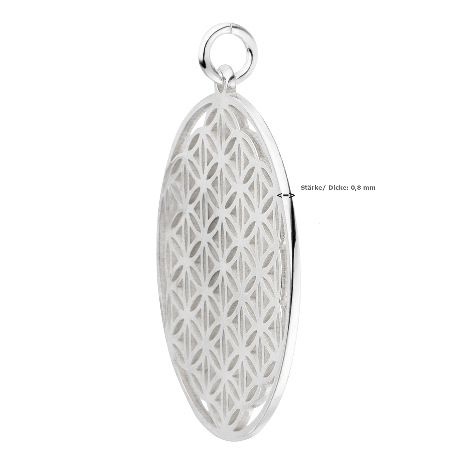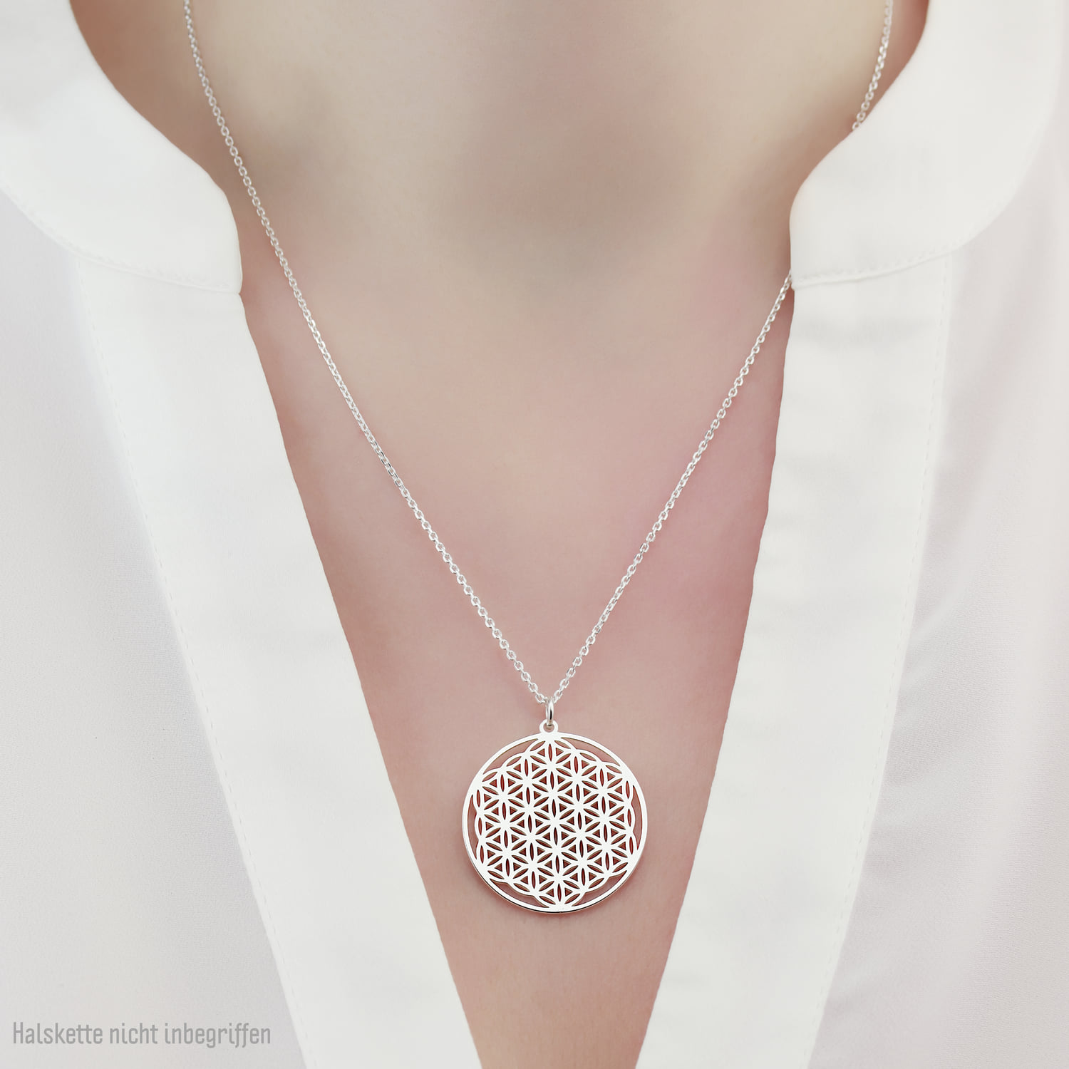 Blume des Lebens Anhänger aus 925 Silber in der Größe ø 25 mm und Stärke 0,7 mm.