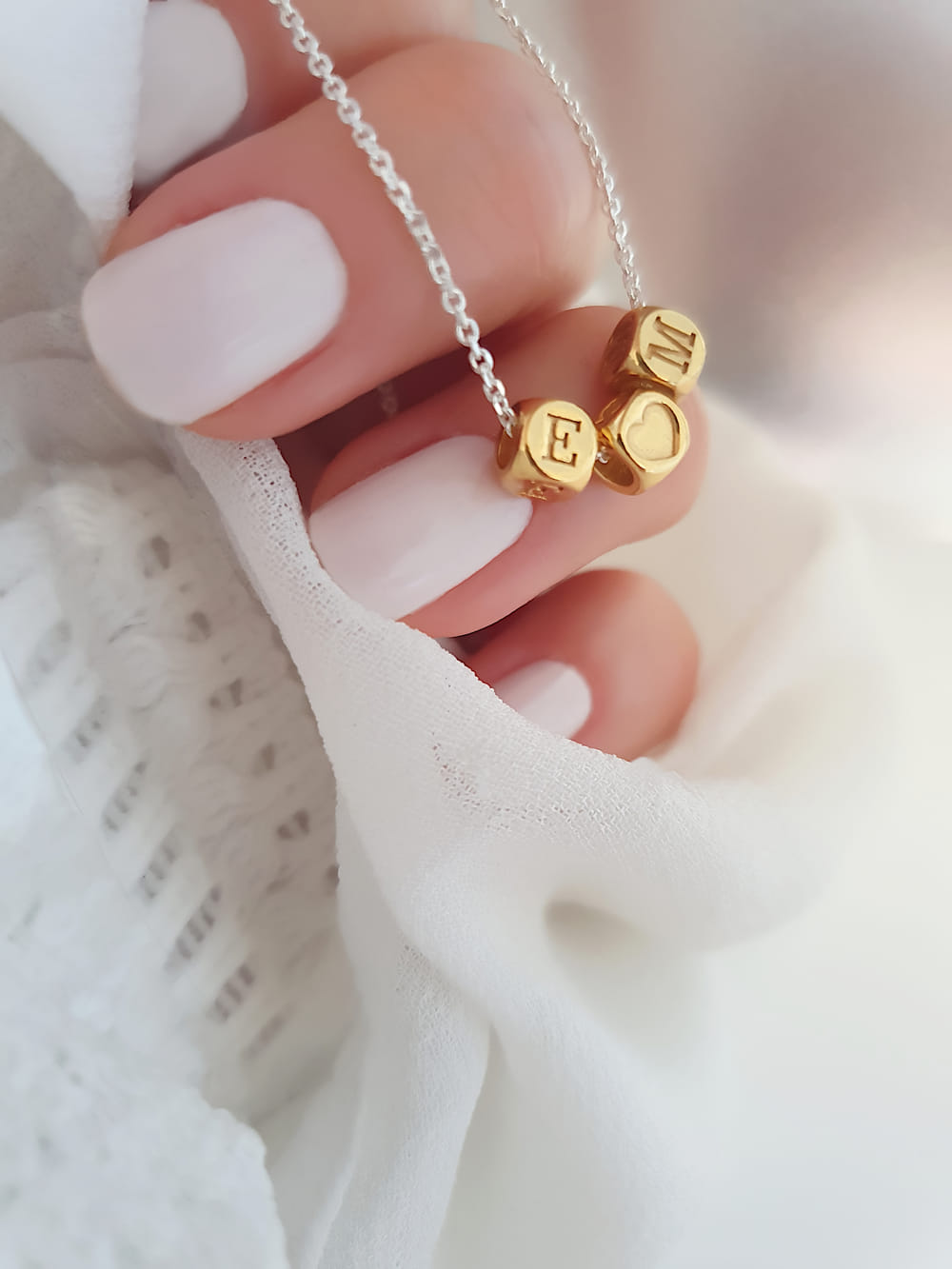 Würfelchen bicolor Kette Buchstaben Herz 925er