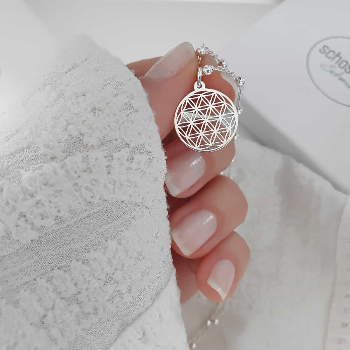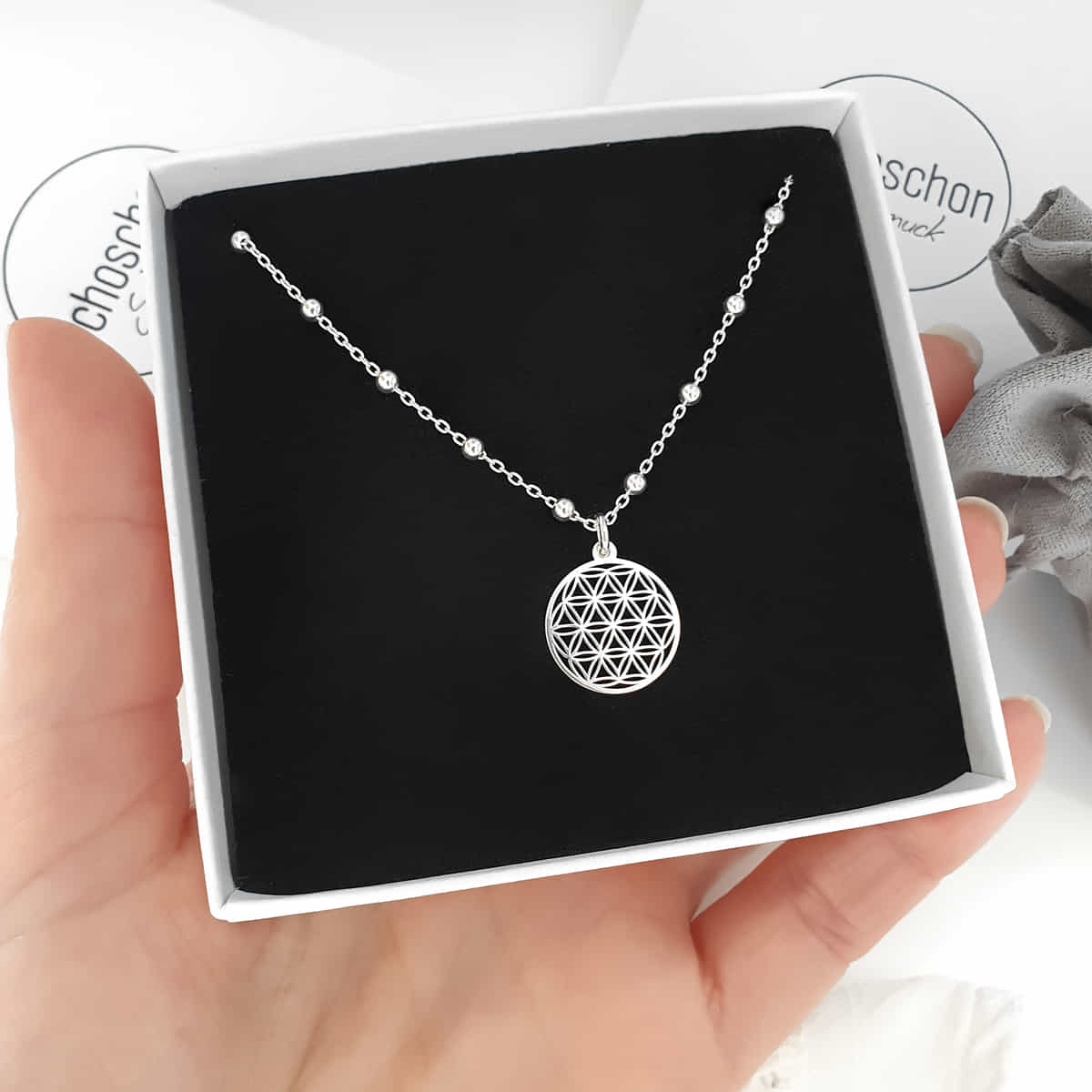 Lebensblume Kügelchen Anhängerkette 925 Silber als Geschenkidee