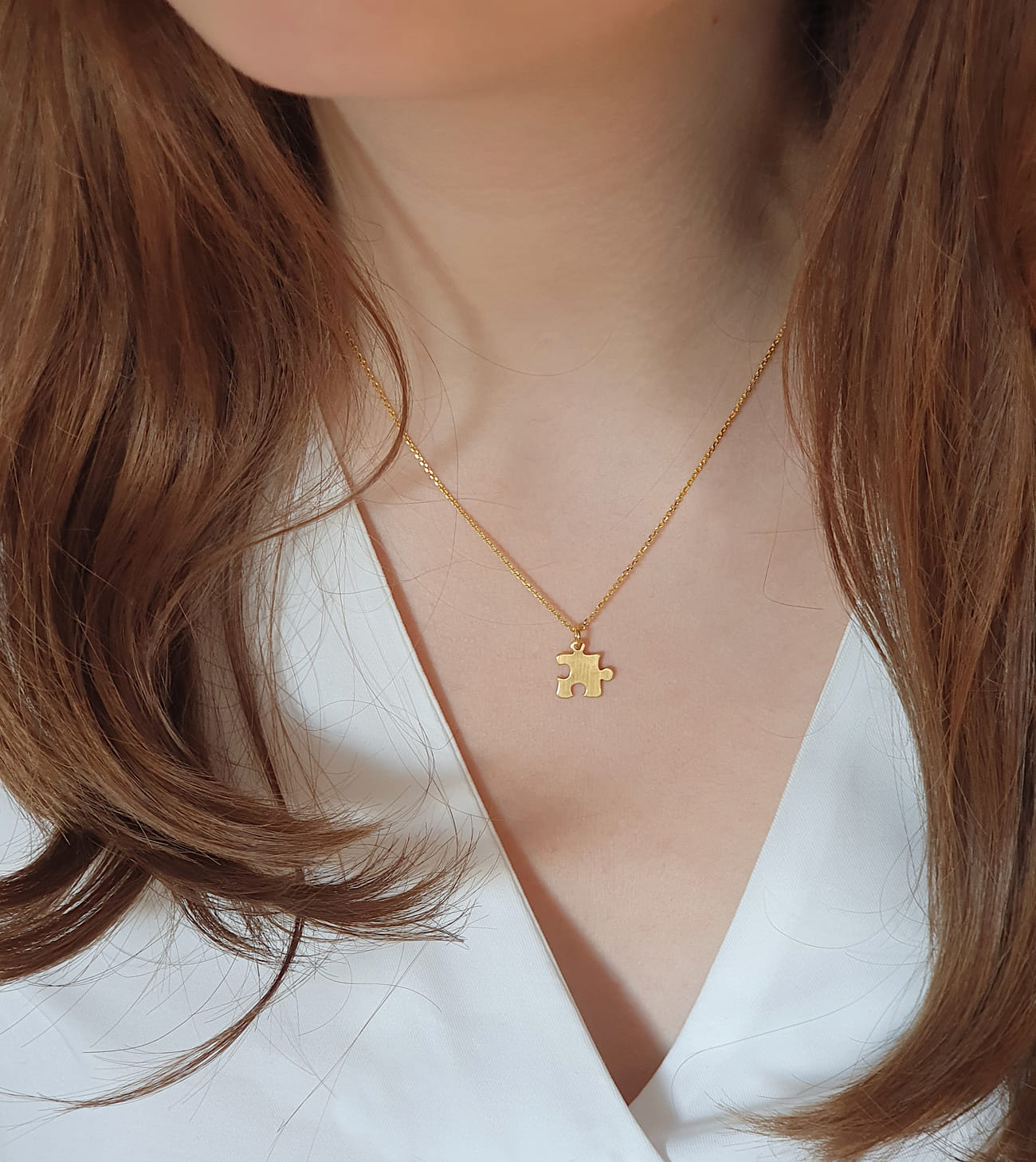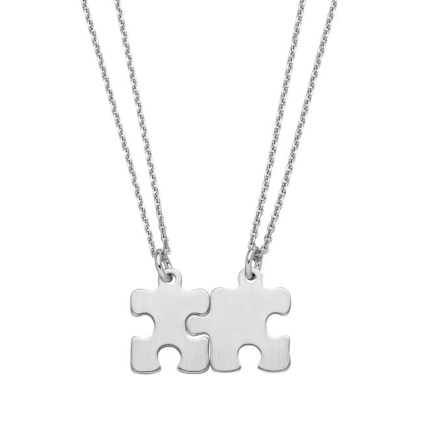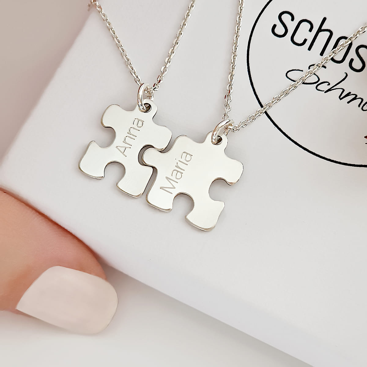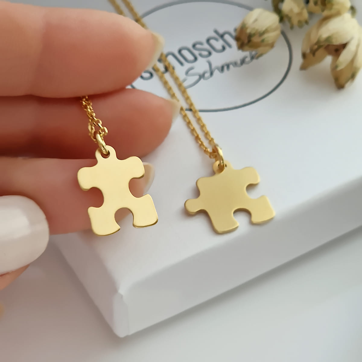 Puzzleteile Halskette Set 925 Silber vergoldet | Partnerketten Puzzle