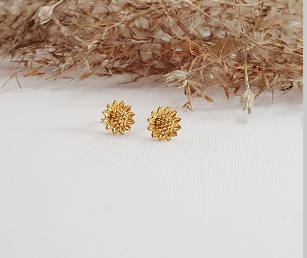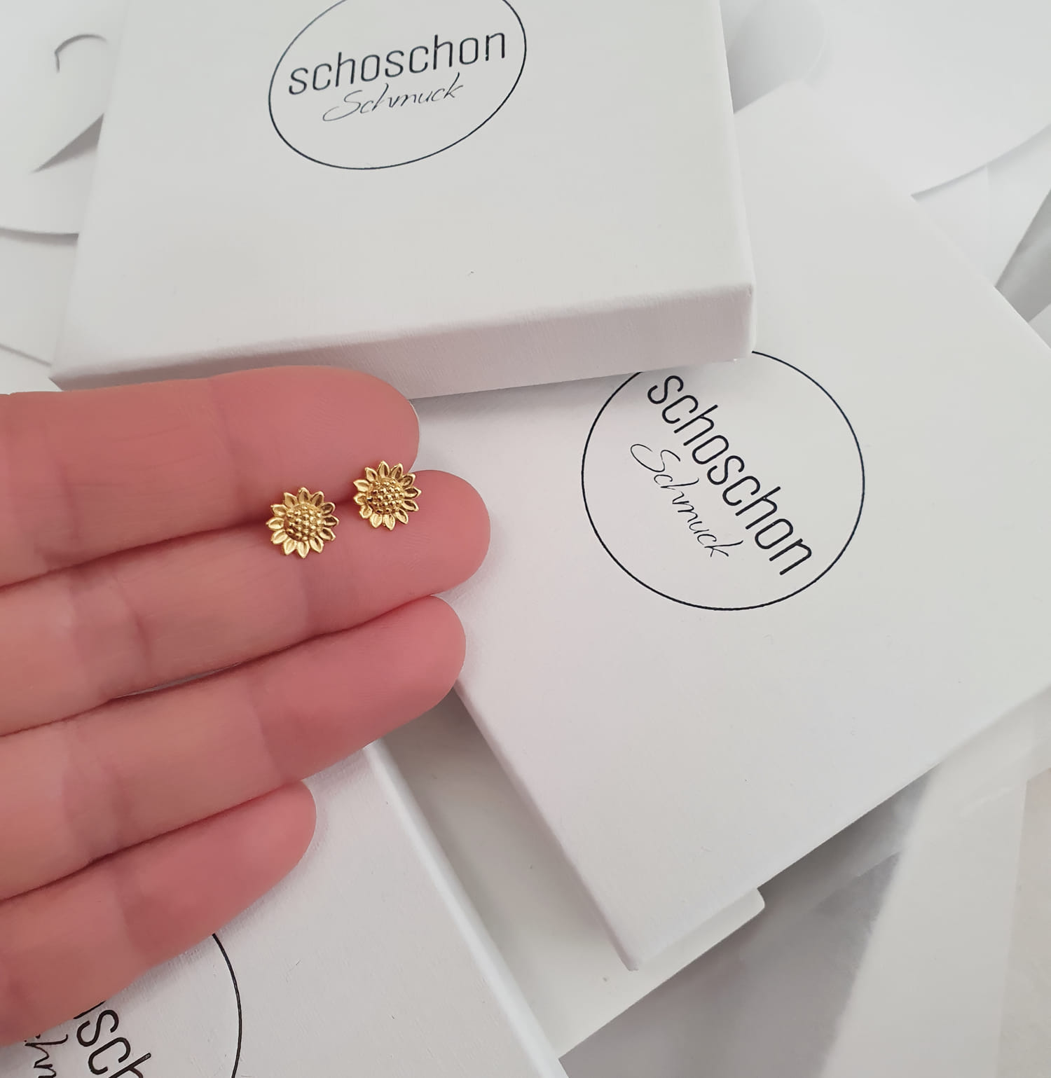 Schmuckset Sonnenblume Kette Anhänger Ohrstecker 925 Silber vergoldet