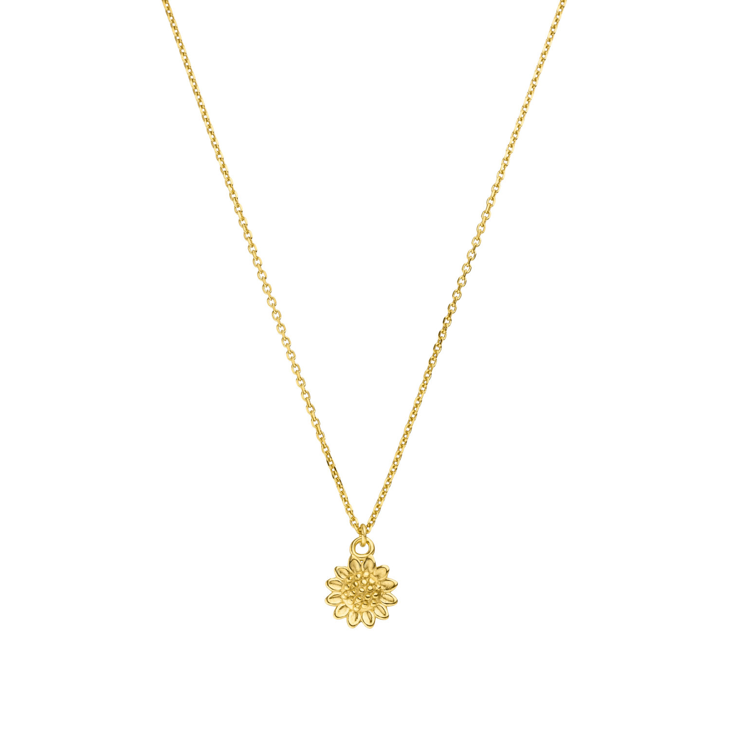 Das Schmuckset Sonnenblume in 925 Silber vergoldet ist ein wunderschönes Set, das aus einer Kette mit Anhänger und Ohrsteckern besteht. Eine filigrane Halskette aus 925 Silber vergoldet mit einem raffiniert gearbeiteten Blumenanhänger und dazu verspielte blumige Details als zarte Ohrstecker aus 925 Silber vergoldet.
