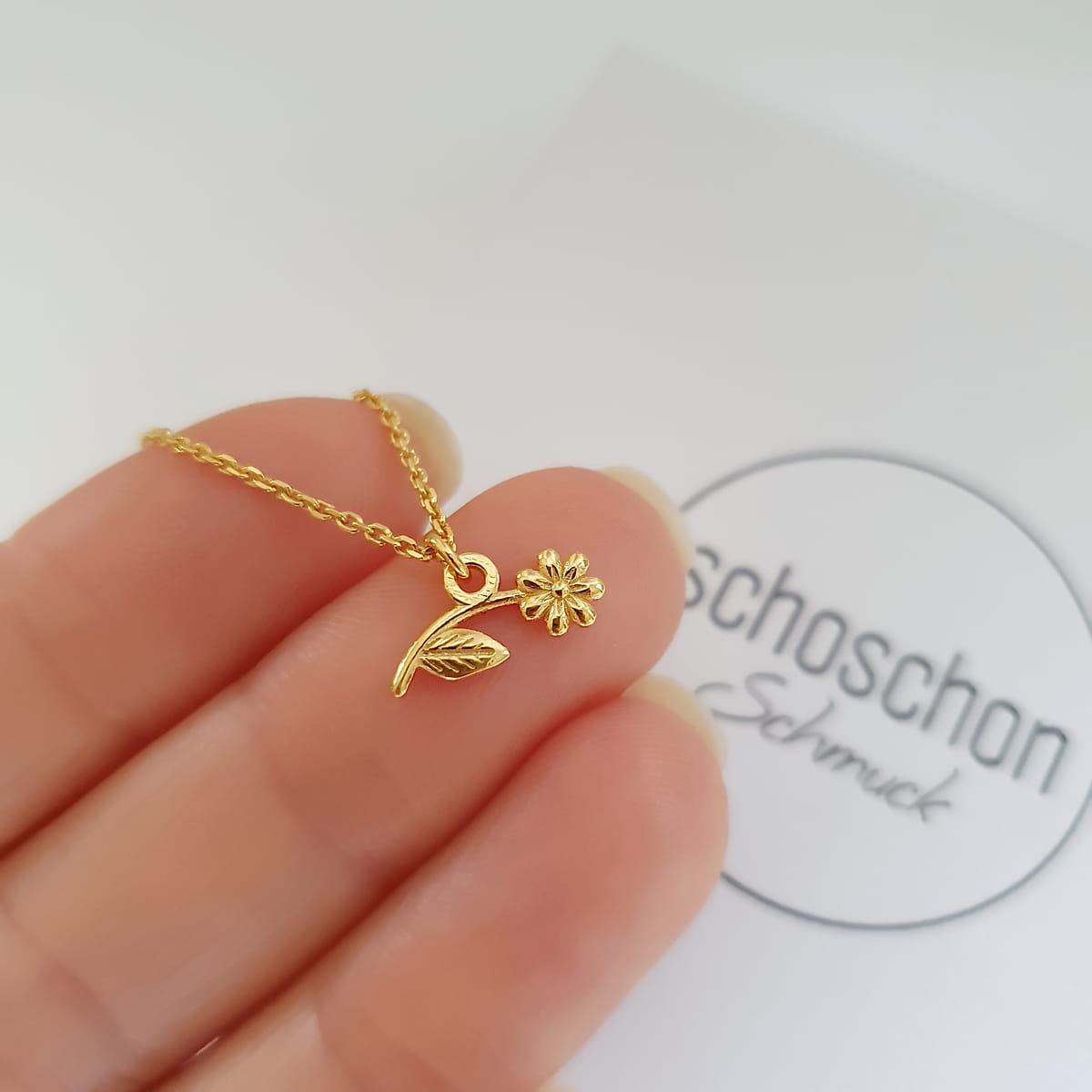 Mini Gänseblümchen Anhängerkette 925 Silber vergoldet