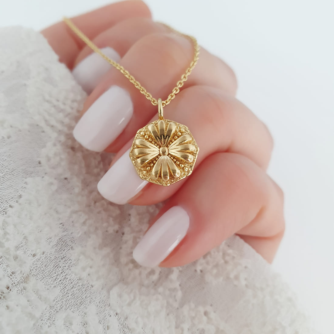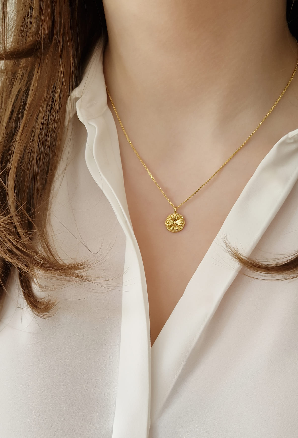 Das kleine Medaillon eignet sich hervorragend als Komponente in deinem Layering-Look oder als einzelne kurze Kette für ein etwas schlichteres und dennoch elegantes Aussehen.