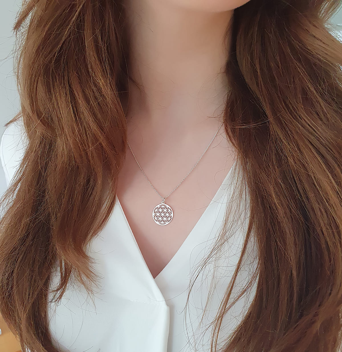 Blume des Lebens Anhängerkette 925 Silber ø 18 mm